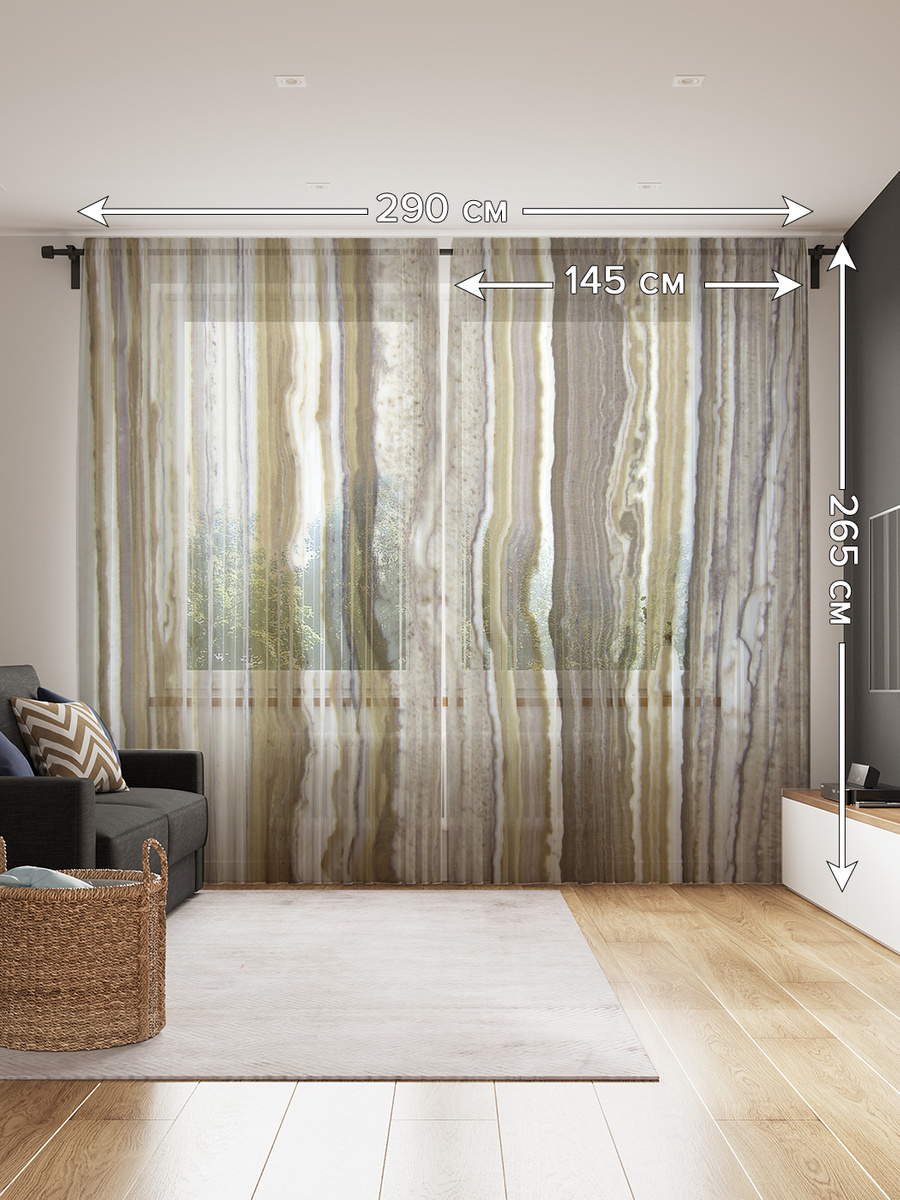 Тюль JoyArty высота 265 см, ширина 290 см, tul_19439_145x265, крепление - Лентакоричневый