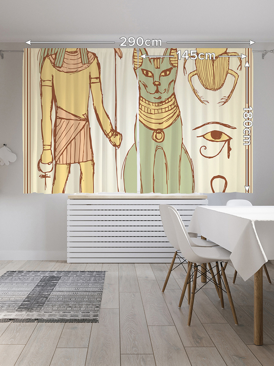 Шторы с фотопечатью "Египетские символы" из сатена, 145х180 см