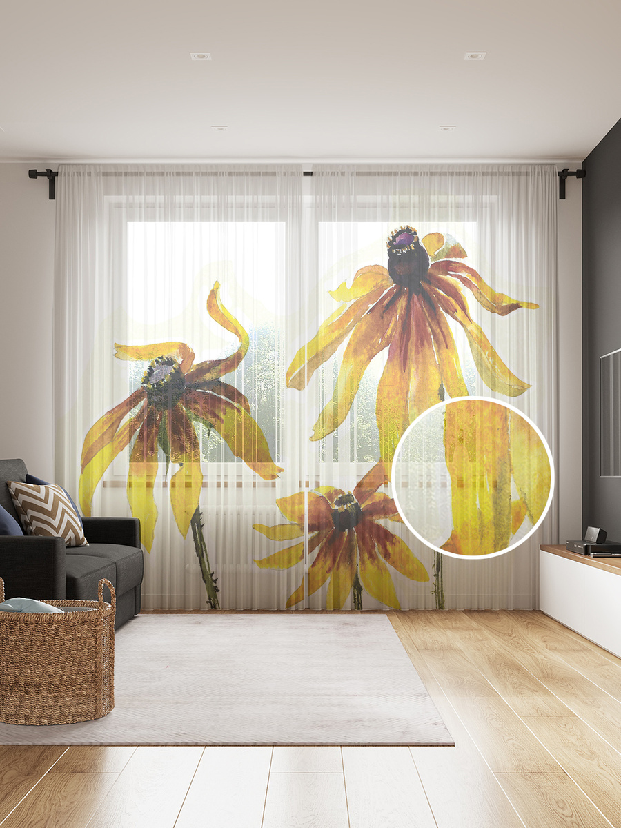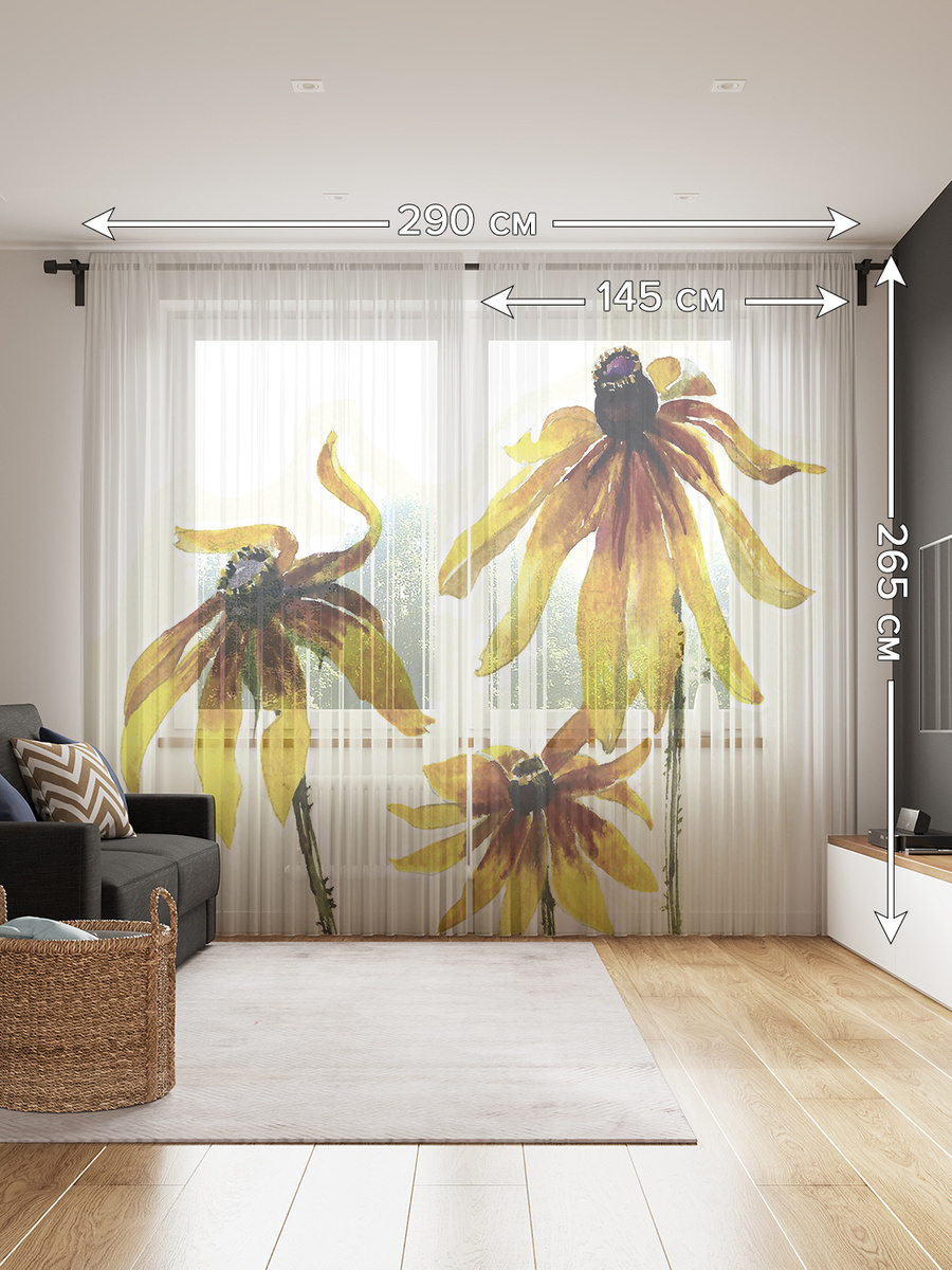 Тюль JoyArty высота 265 см, ширина 290 см, tul_13882_145x265, крепление - Лентажелтый