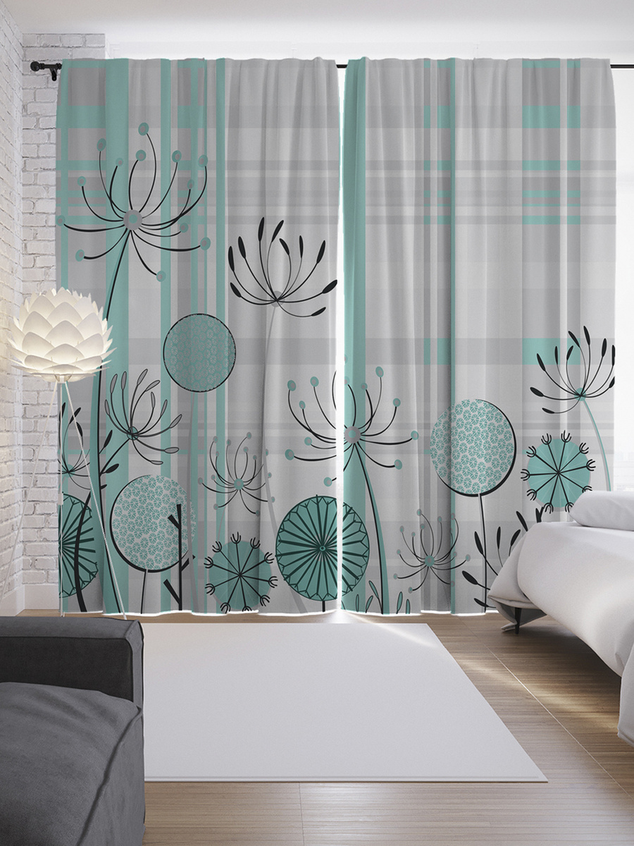 Шторы с фотопечатью "Краски одуванчиков" из сатена, 290х265 см