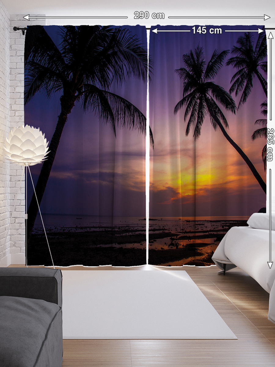 Шторы с фотопечатью "Пляж с пальмами на закате" из сатена, 290х265 см