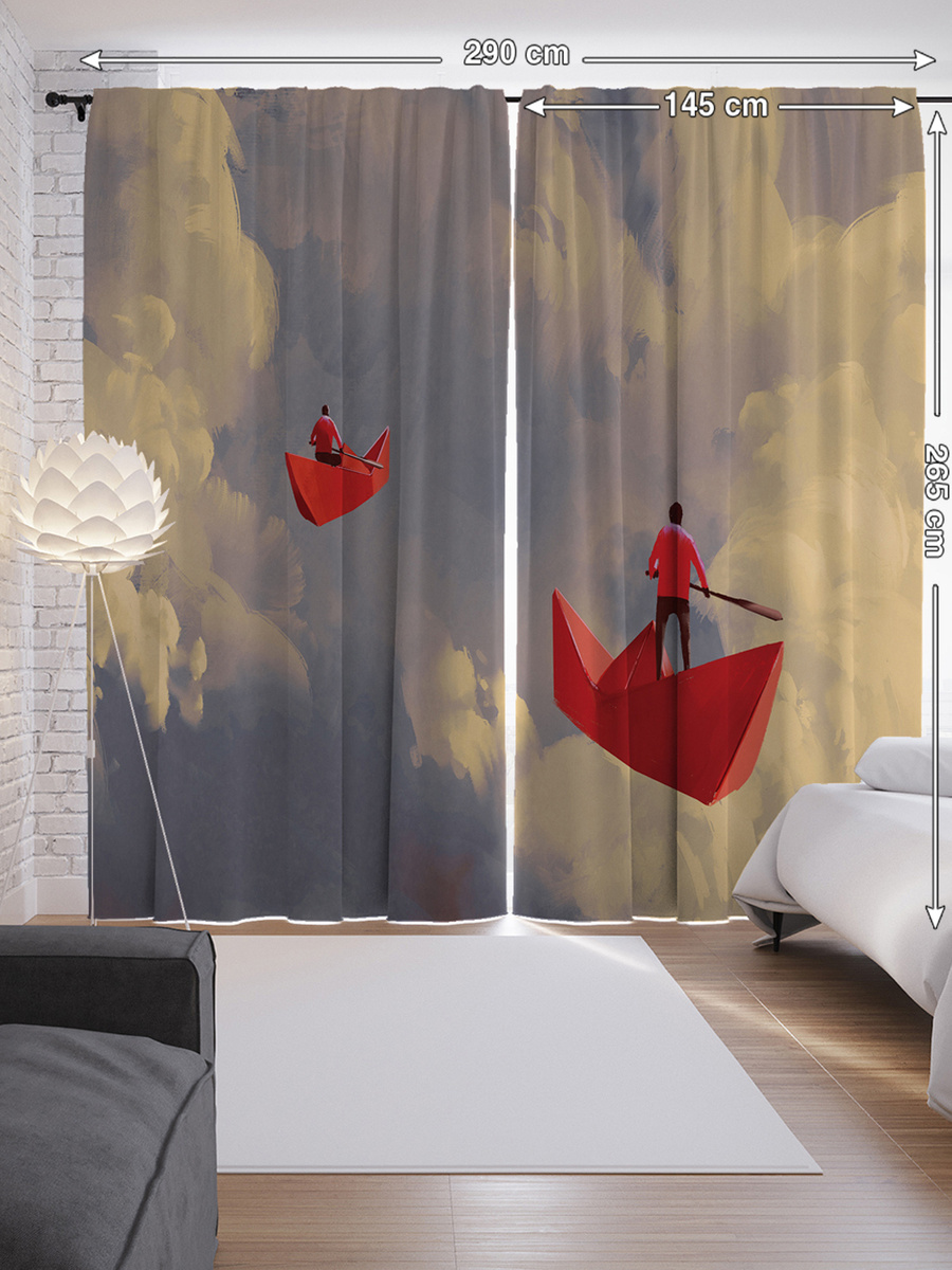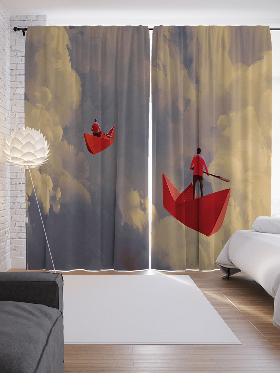 Шторы с фотопечатью "Облачное плавание" из сатена, 145x265 см