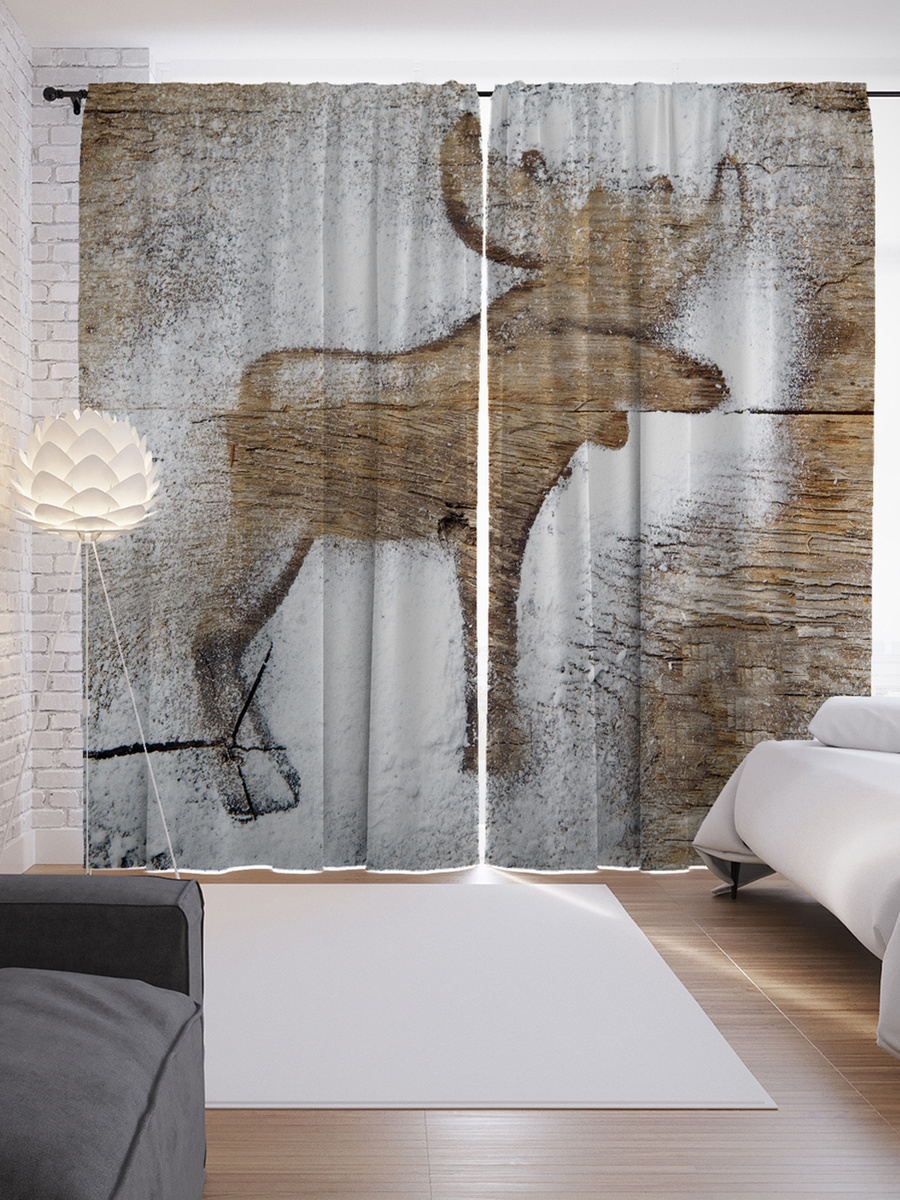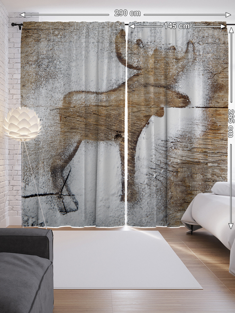 Шторы с фотопечатью "Лось из снега" из сатена, 290х265 см
