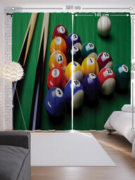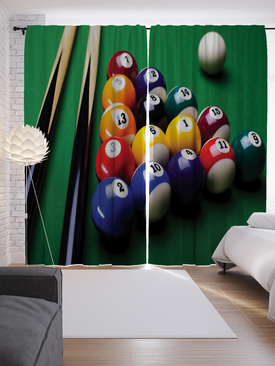 Шторы с фотопечатью "Бильярдный набор" из сатена, 290х265 см