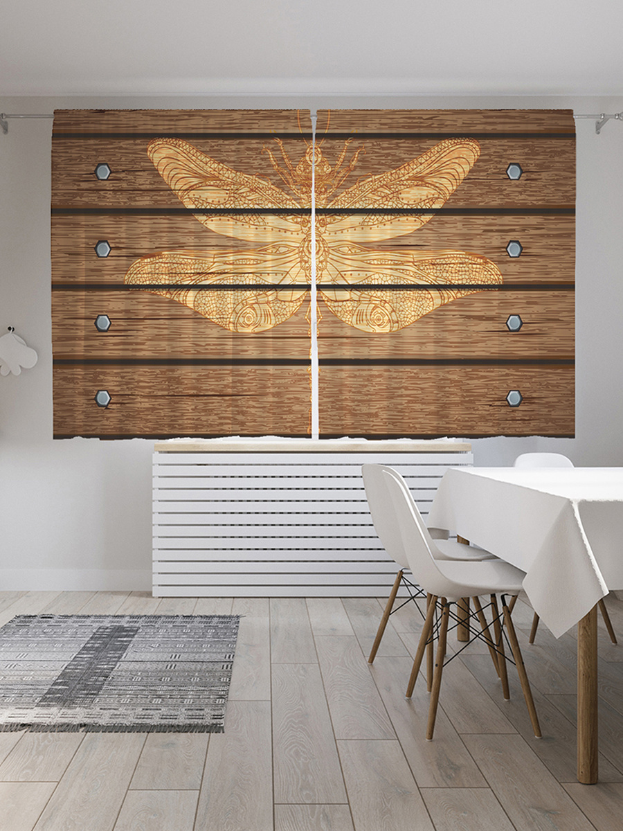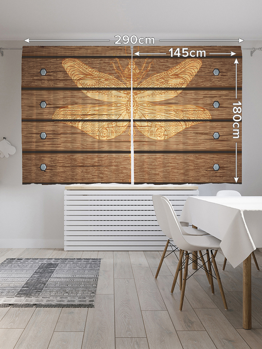 Шторы с фотопечатью "Стрекоза деревянная текстура" из сатена, 145х180 см