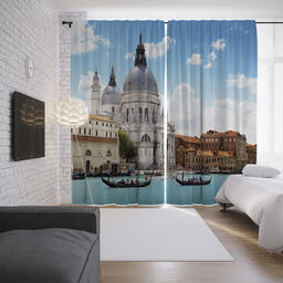 Шторы с фотопечатью "Собор у реки" из сатена, 145x265 см