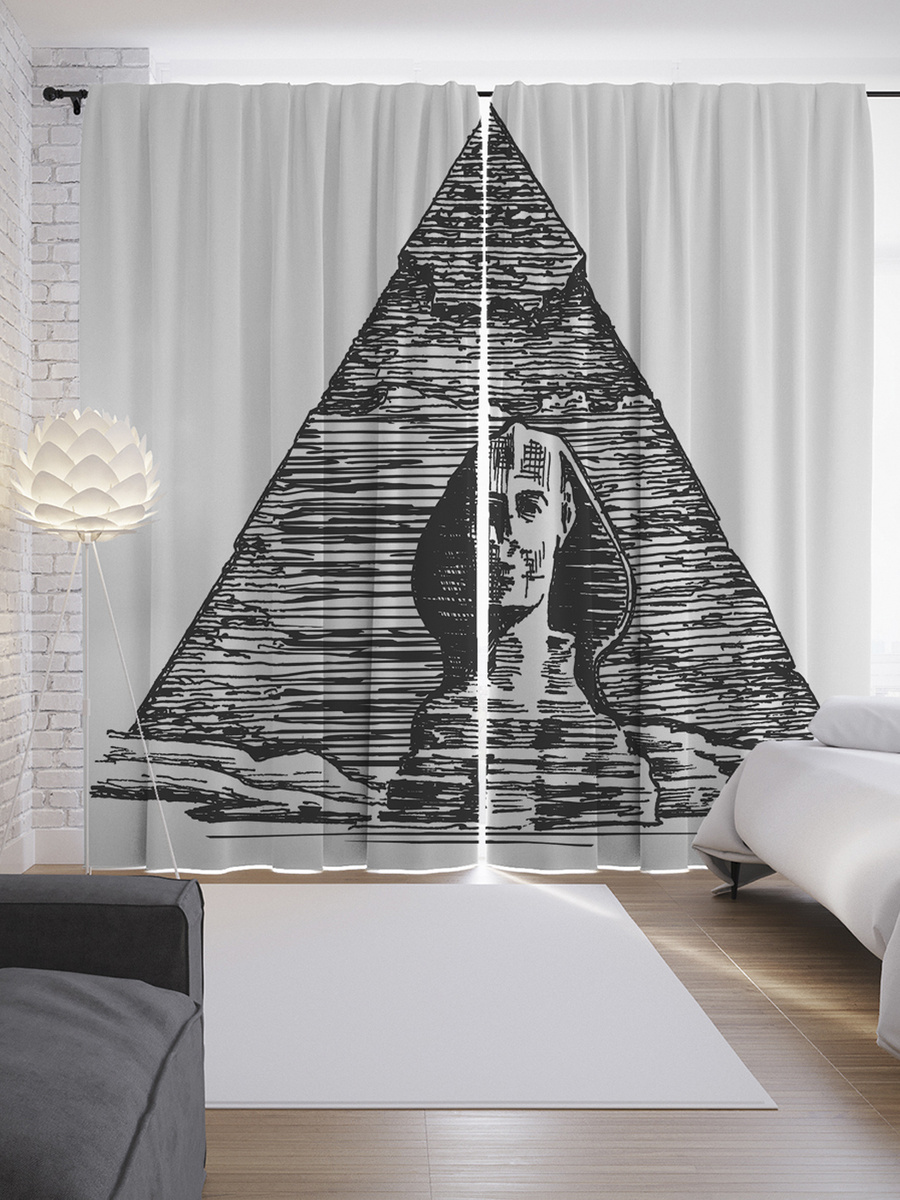 Шторы с фотопечатью "Эскиз сфинкса" из сатена, 145x265 см