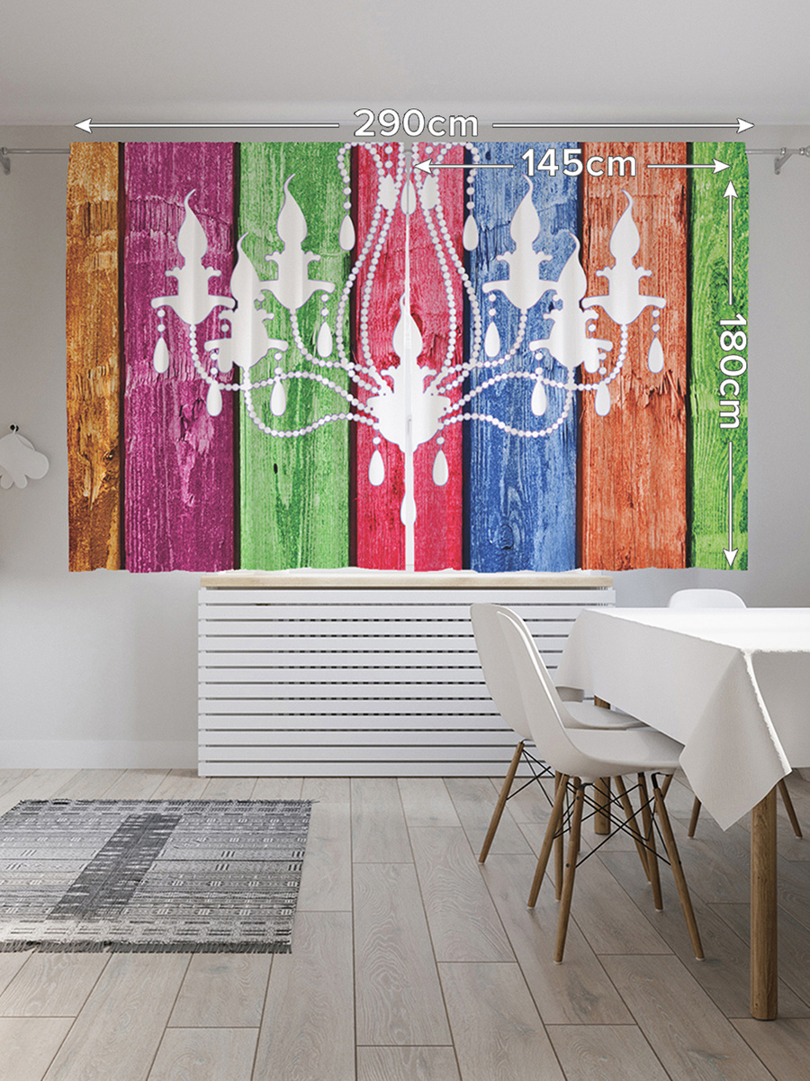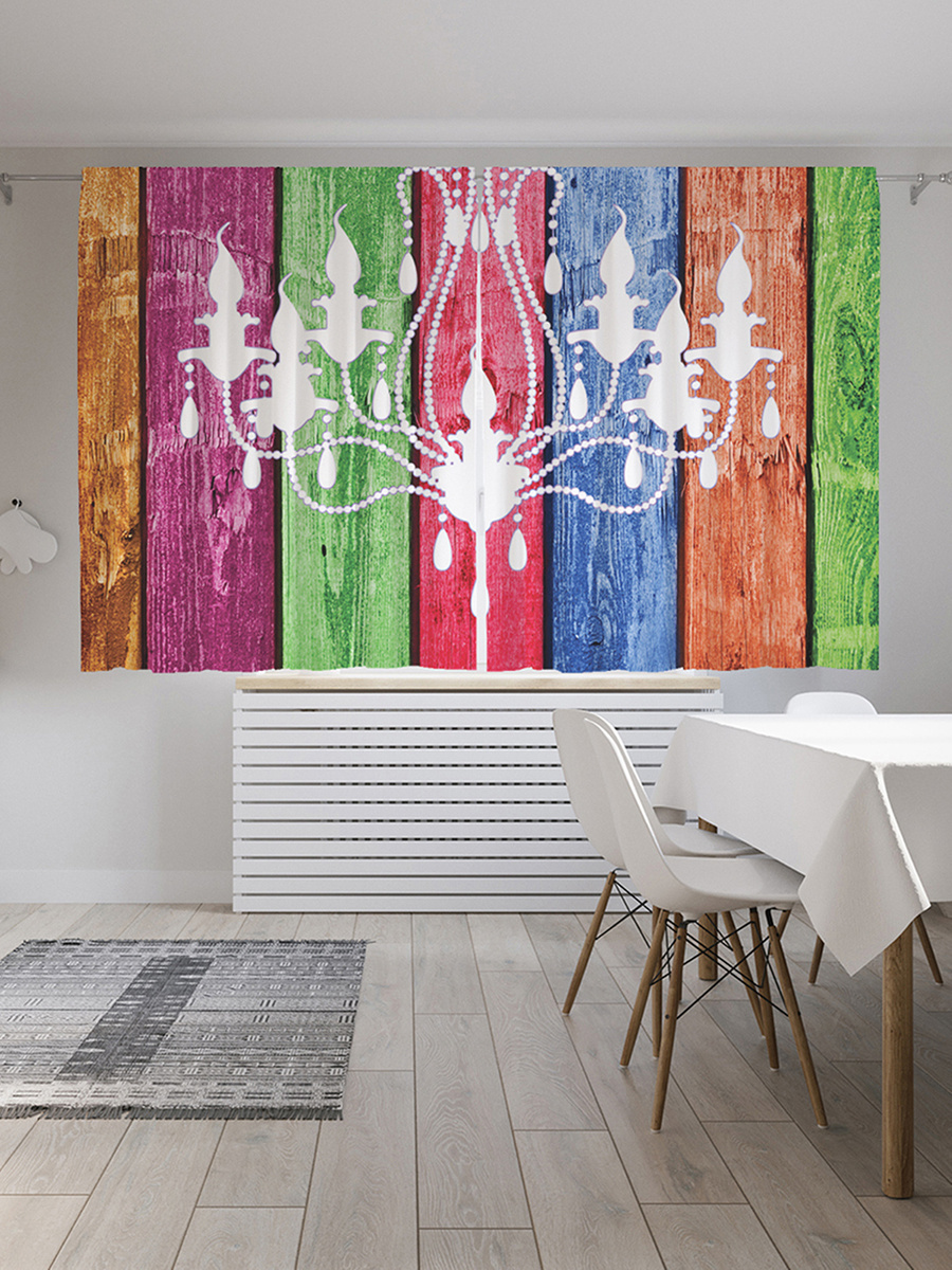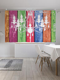 Шторы с фотопечатью "Люстра на красочной доске" из сатена, 145х180 см