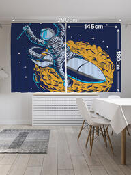 Шторы с фотопечатью "Космический странник" из сатена, 145х180 см