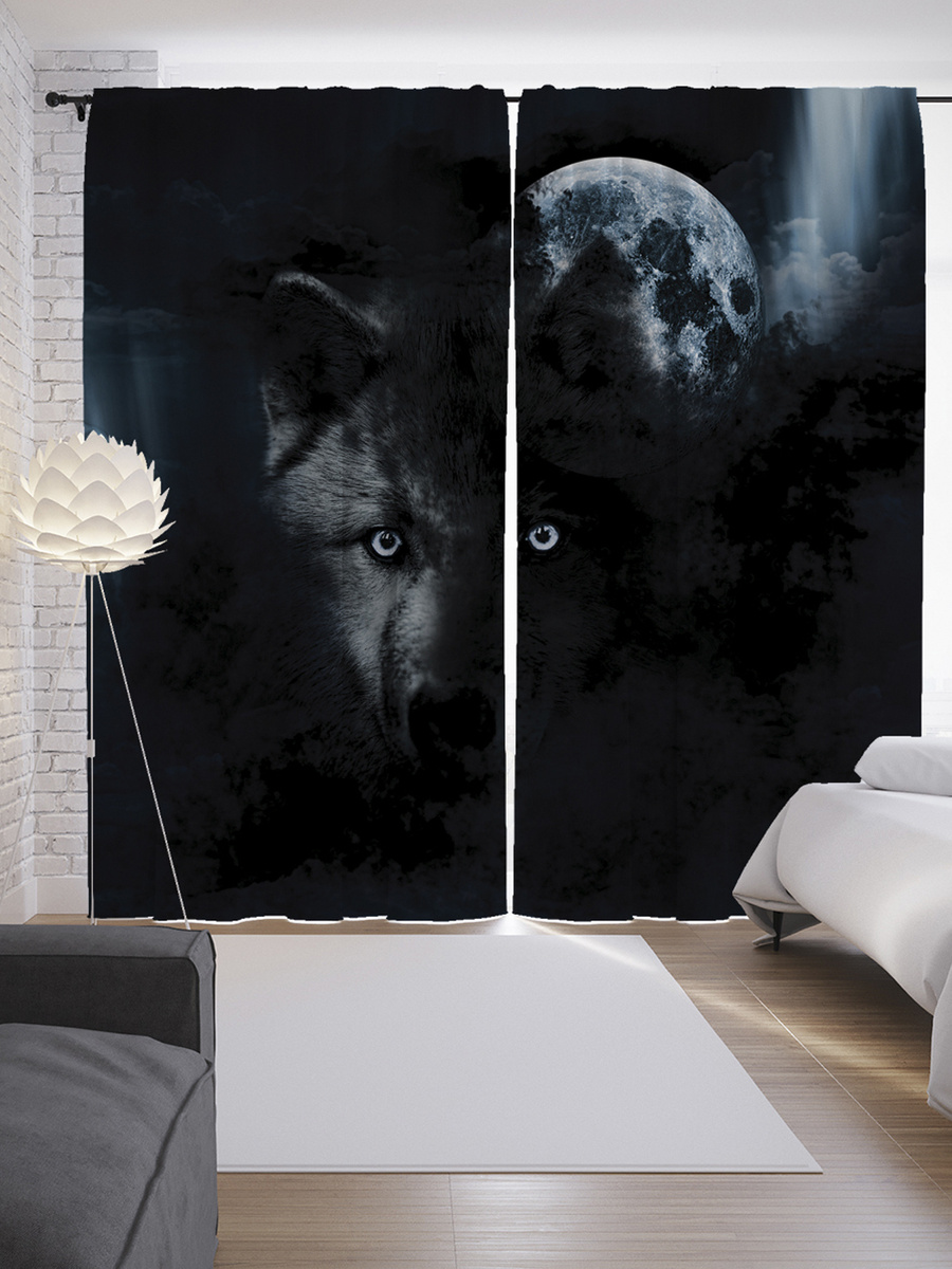 Шторы с фотопечатью "Волк и луна" из сатена, 290х265 см