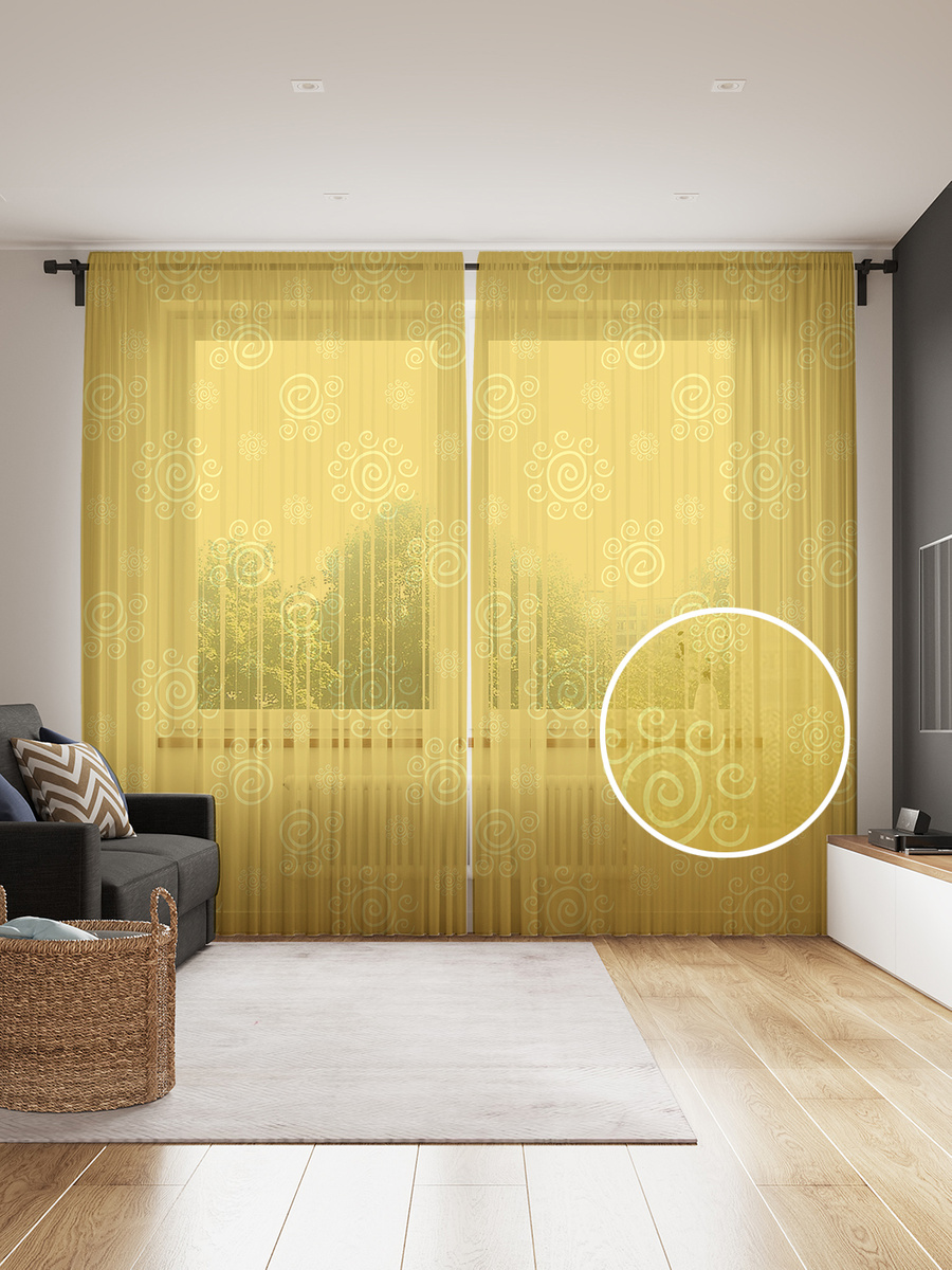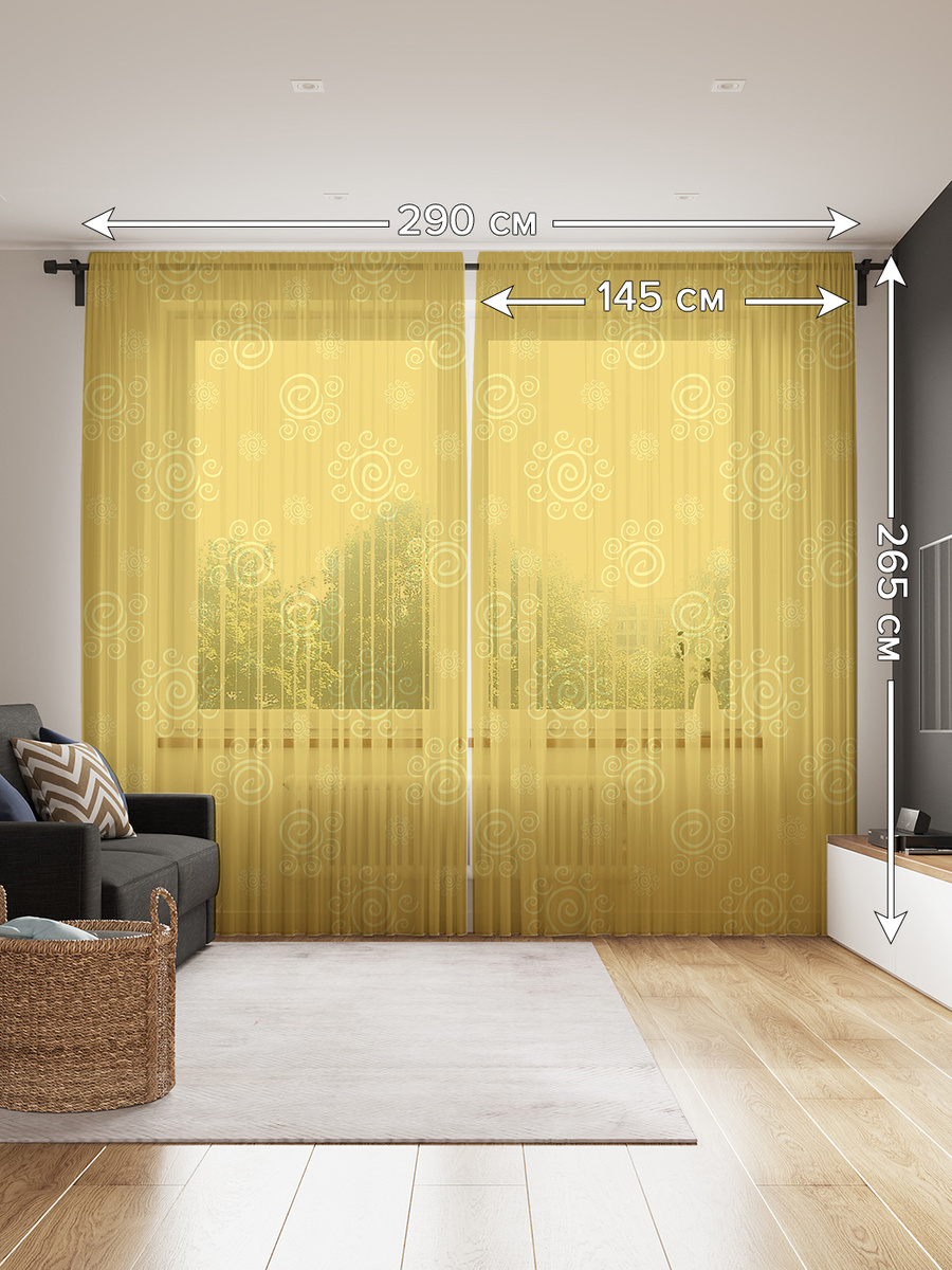 Тюль JoyArty высота 265 см, ширина 290 см, tul_21885_145x265, крепление - Лентажелтый