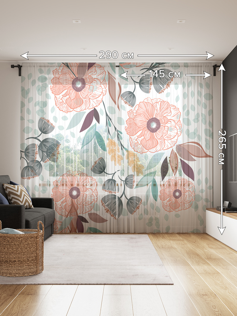 Тюль JoyArty высота 265 см, ширина 290 см, tul_70707_145x265, крепление - Лентарозовый