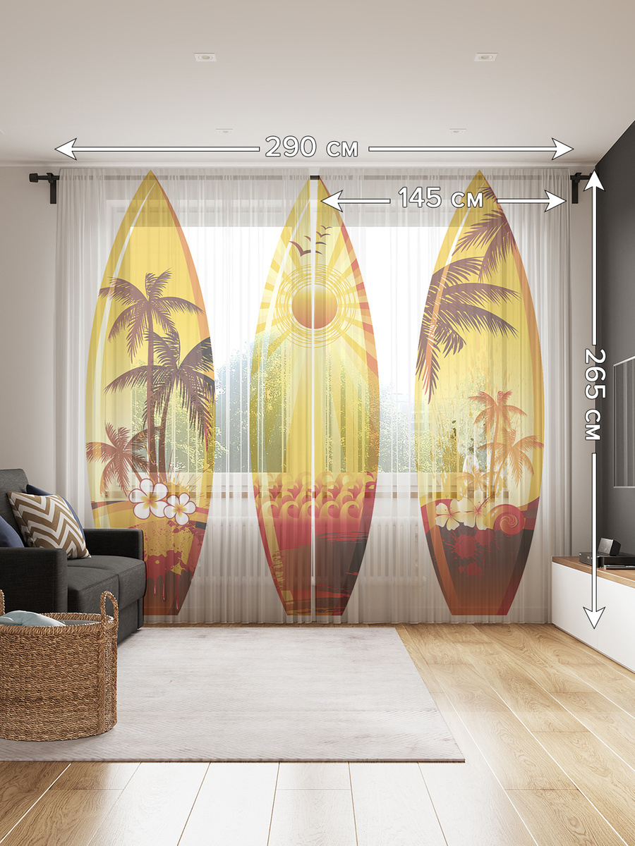 Тюль JoyArty высота 265 см, ширина 290 см, tul_9696_145x265, крепление - Лентаоранжевый