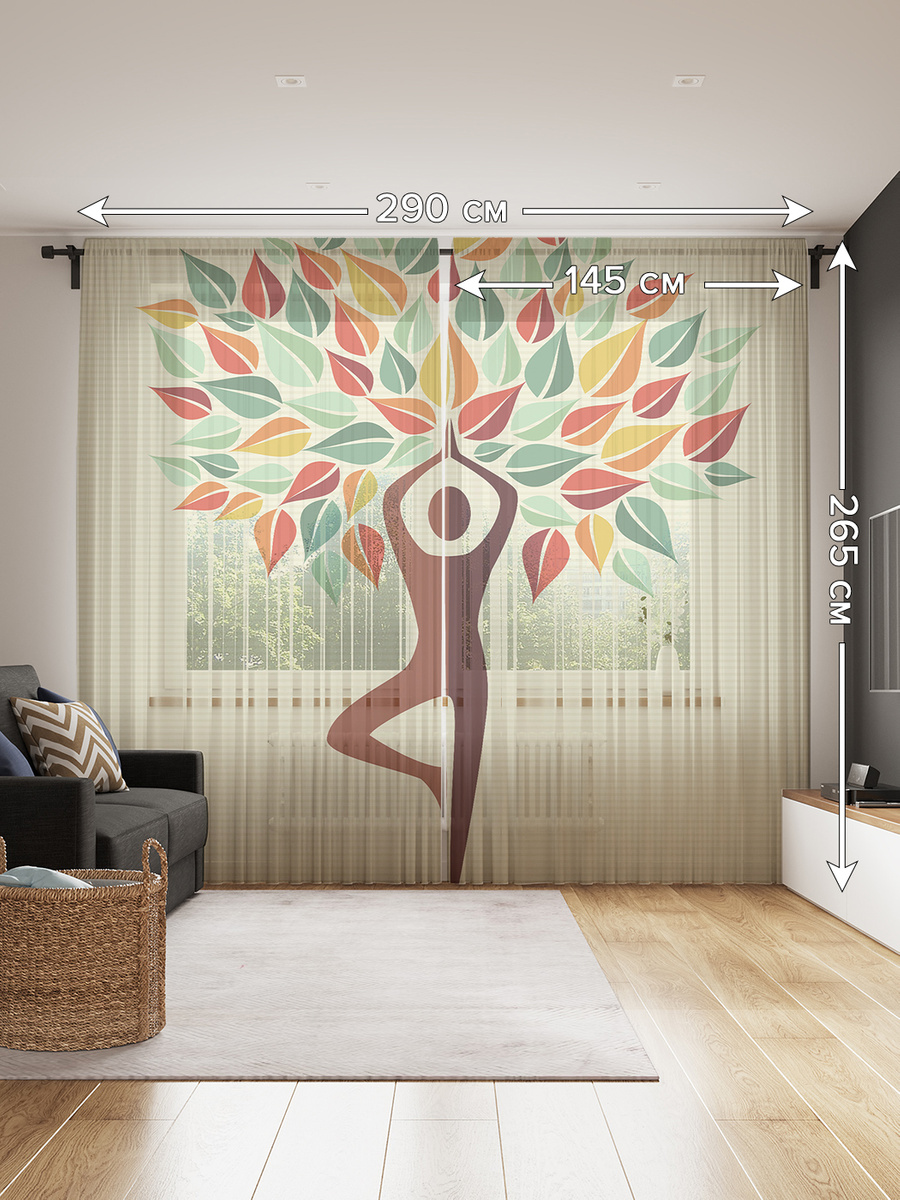 Тюль JoyArty высота 265 см, ширина 290 см, tul_9716_145x265, крепление - Лентазеленый