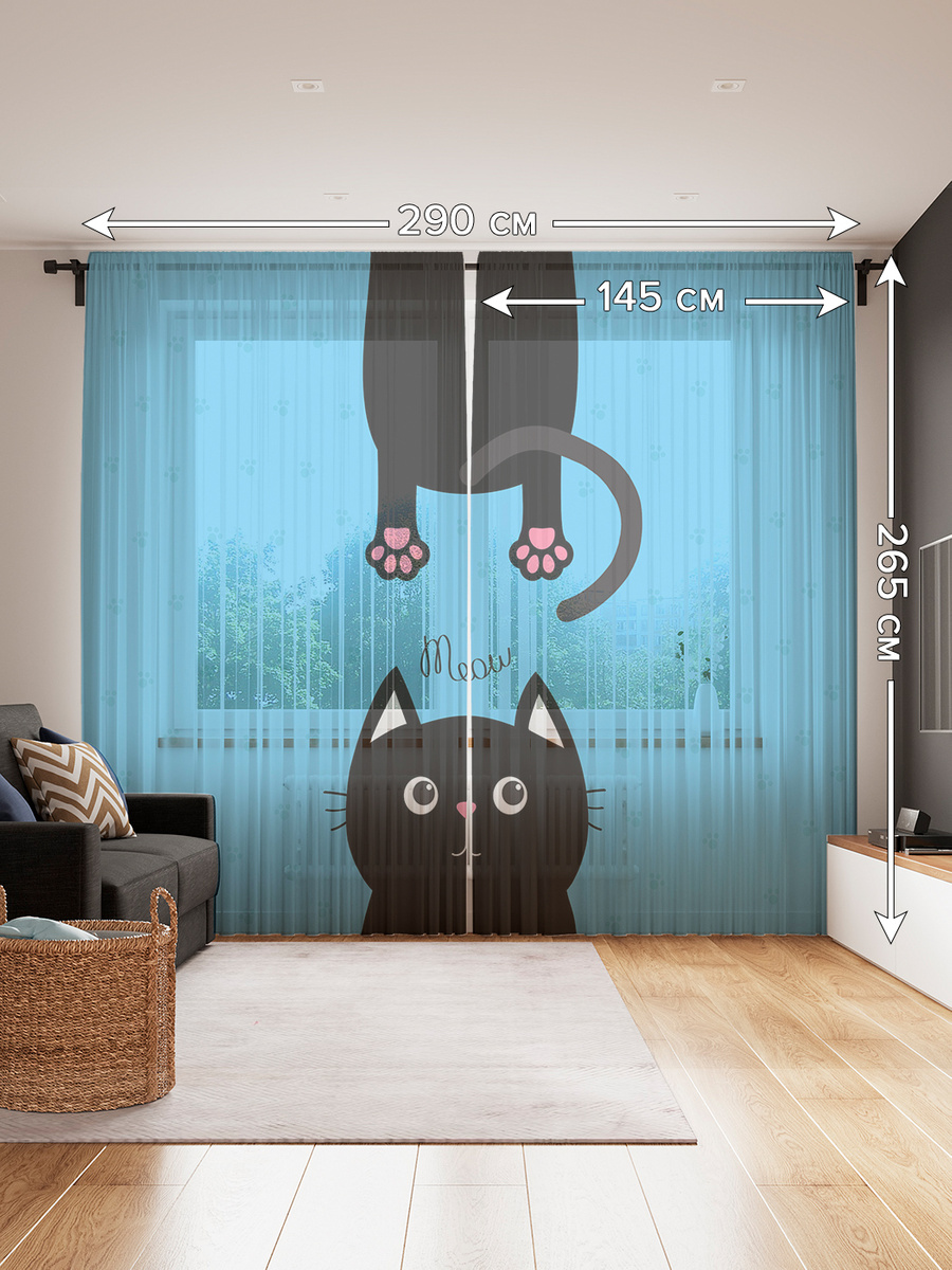 Тюль JoyArty высота 265 см, ширина 290 см, tul_52750V1_145x265, крепление - Лентаголубой
