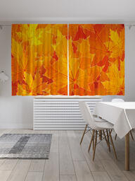 Шторы с фотопечатью "Листопад" из сатена, 145х180 см
