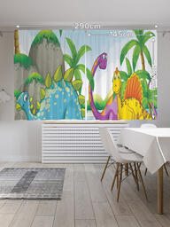 Шторы с фотопечатью "Динозавры на водопое" из сатена, 145х180 см