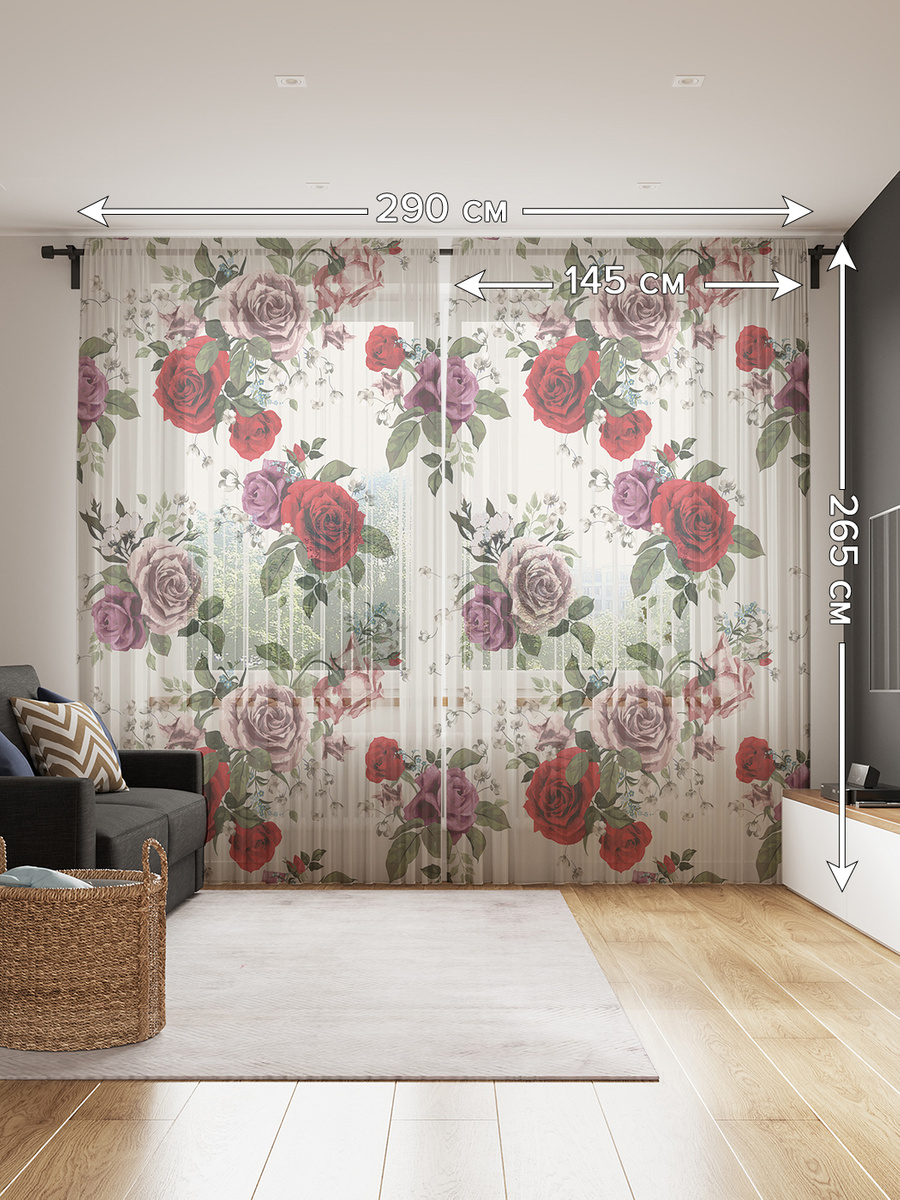 - Комплектация Тюль из 2-х полотен - 1 шт., крючки для креплекния - 50 шт.
