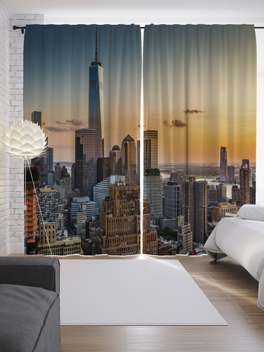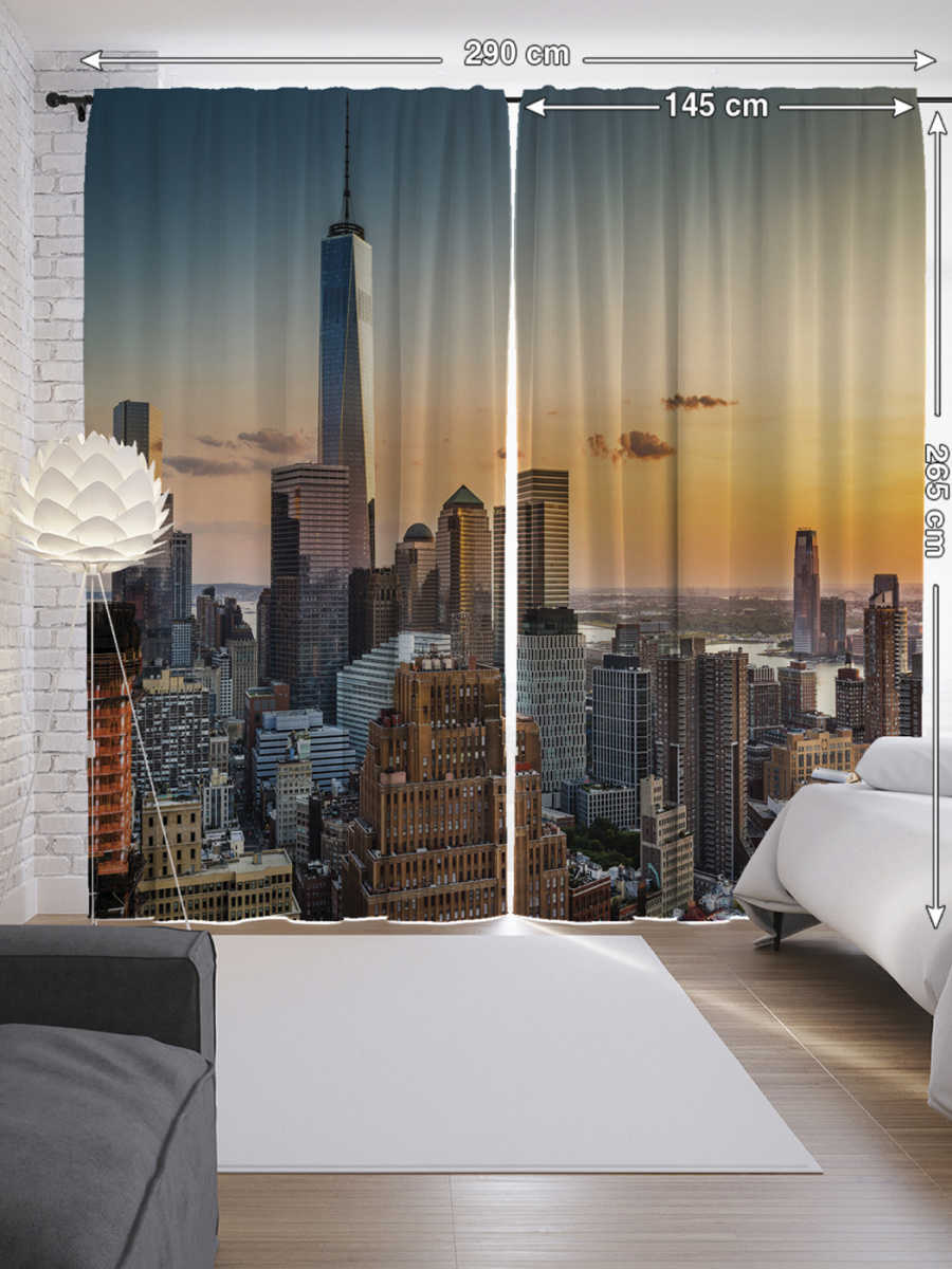 Шторы с фотопечатью "Городские полеты" из сатена, 290х265 см
