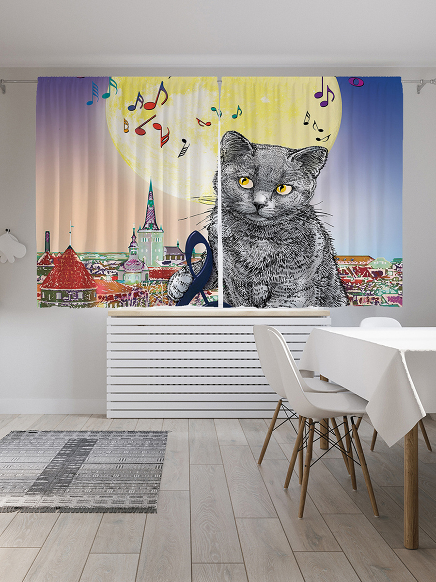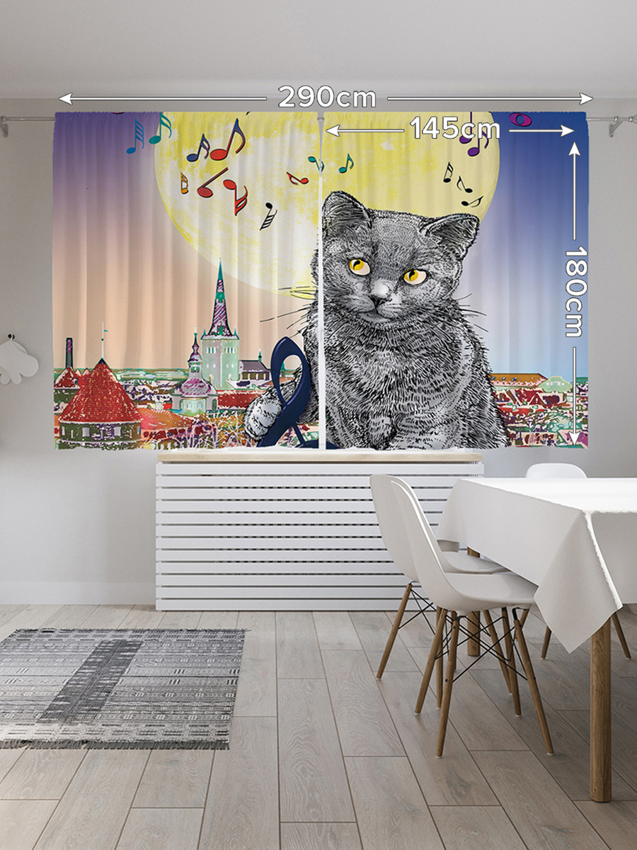 Шторы под лён "Кот ловит музыку", серия Oxford DeLux, 145x180 см