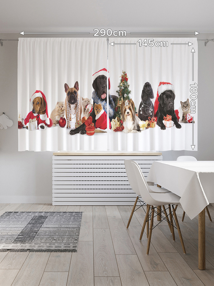 Шторы с фотопечатью "Собаки-Санты" из сатена, 145х180 см