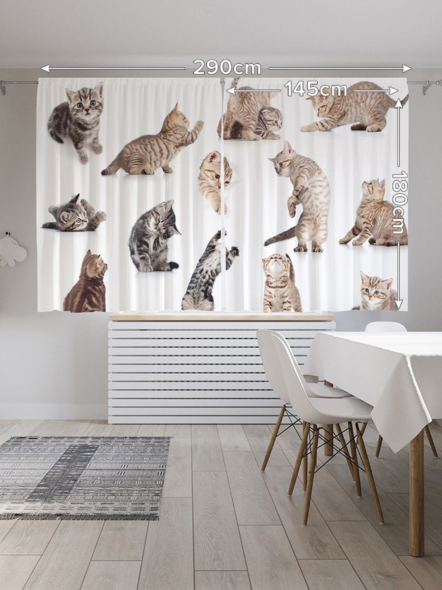 Шторы с фотопечатью "Кошачьи игры" из сатена, 145х180 см