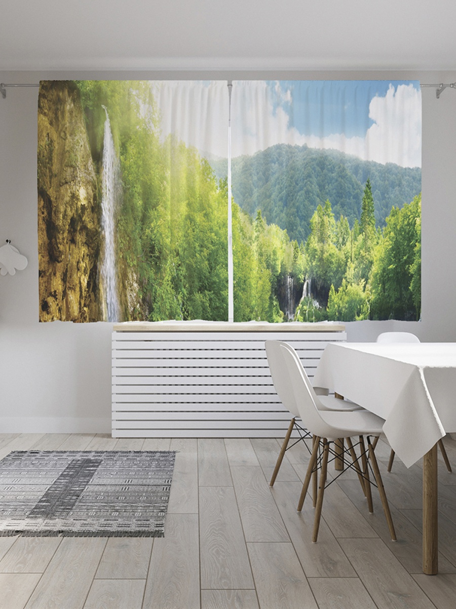 Шторы с фотопечатью "Скопление водопадов" из сатена, 145х180 см
