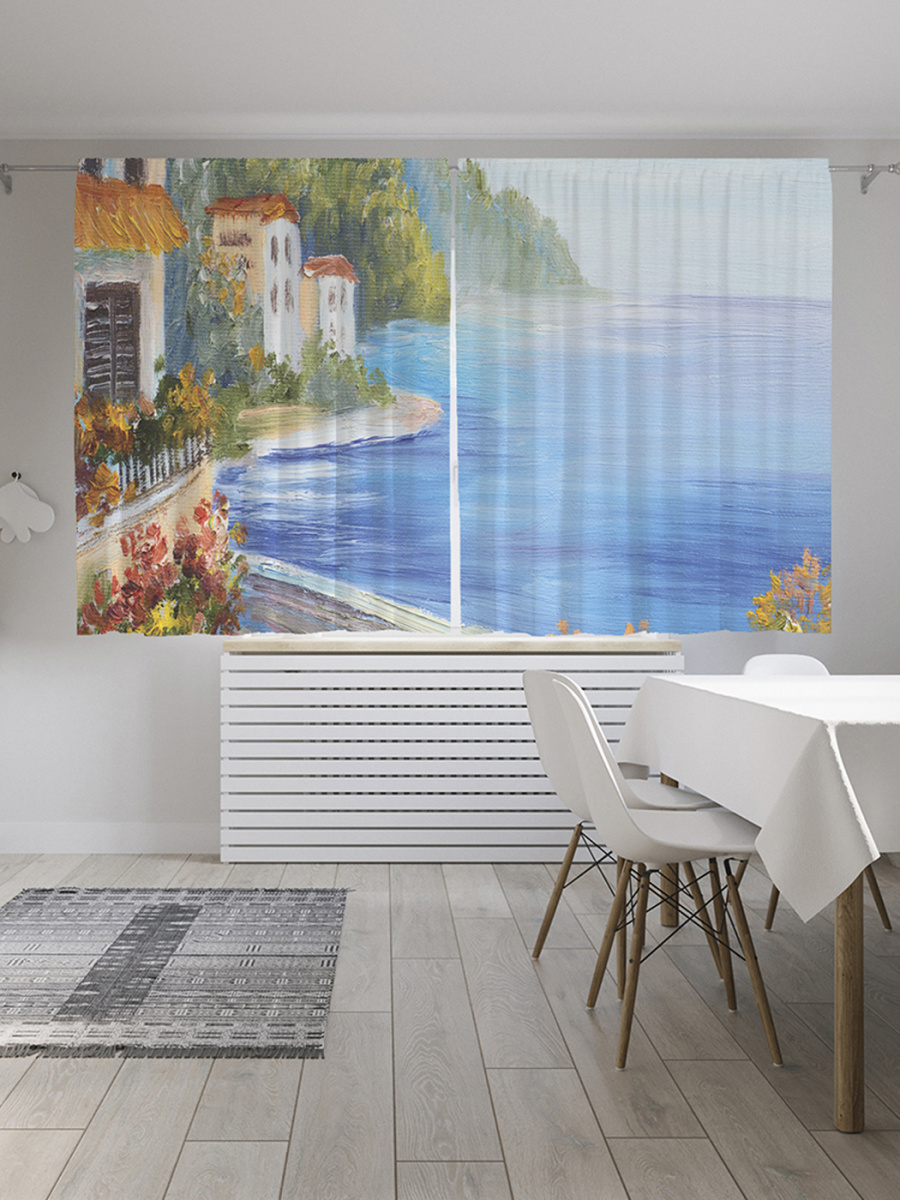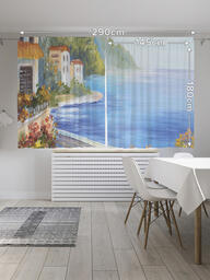 Шторы с фотопечатью "Дорога над морем" из сатена, 145х180 см