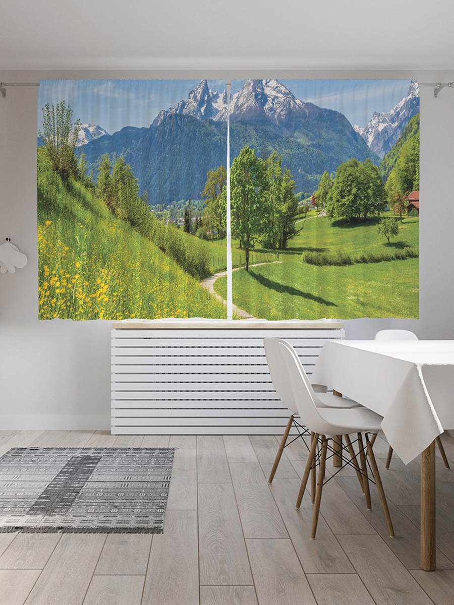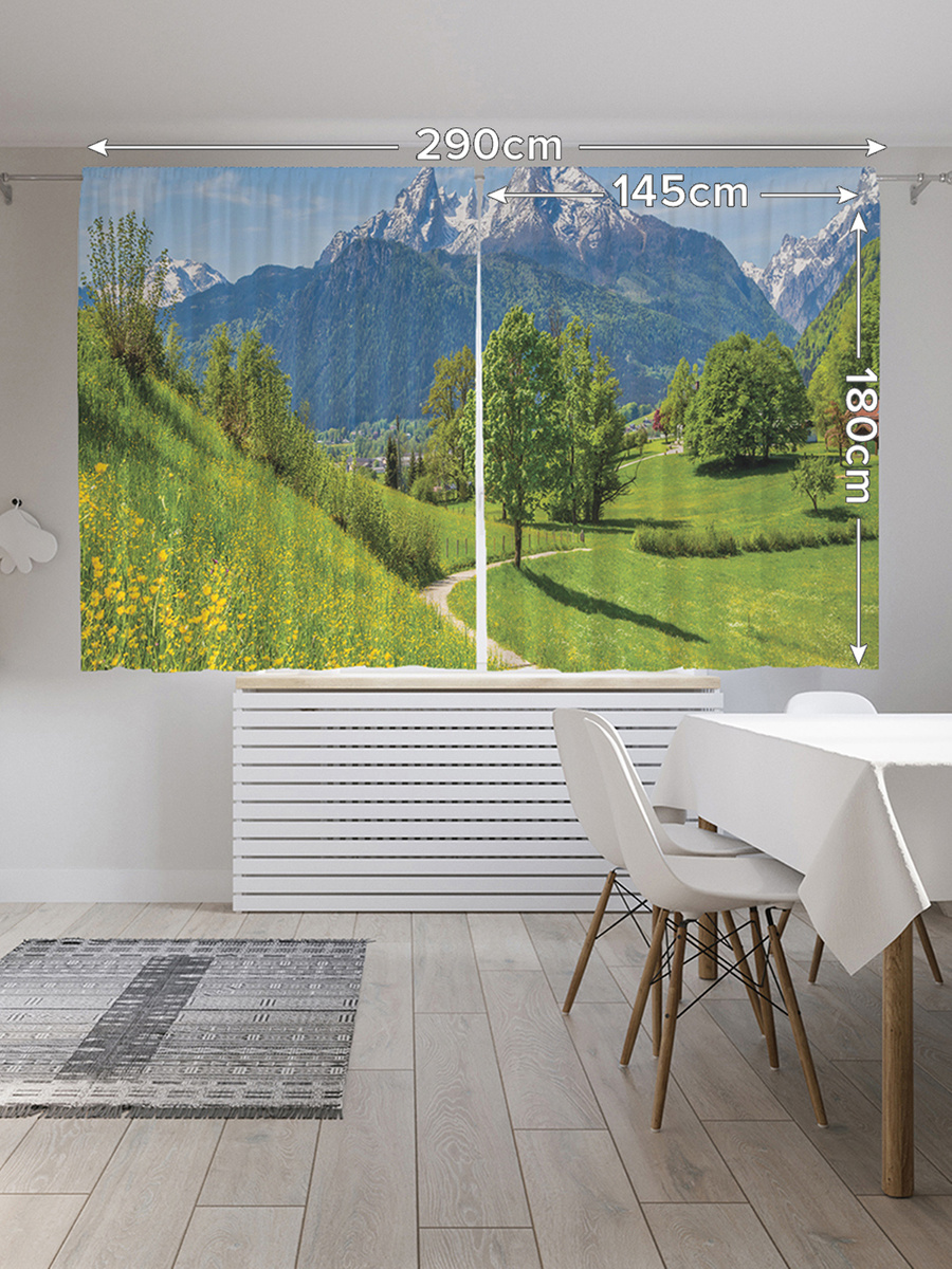 Шторы с фотопечатью "Тропа через долину в горы" из сатена, 145х180 см