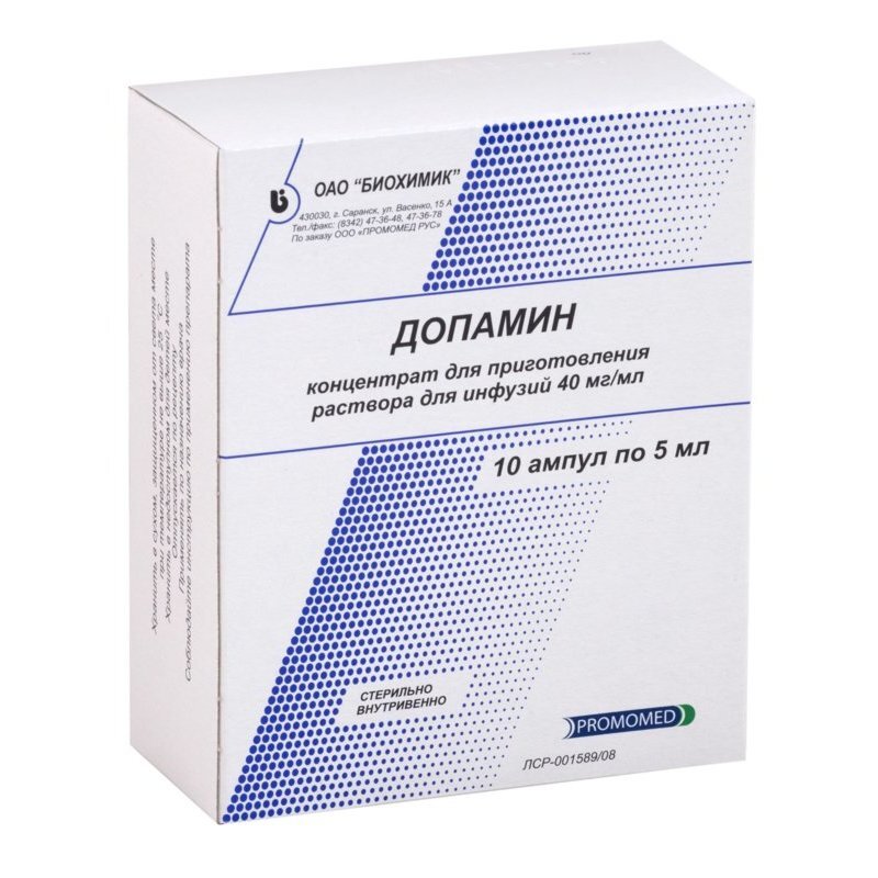 Действующее вещество: допамина гидрохлорид 40 мг;