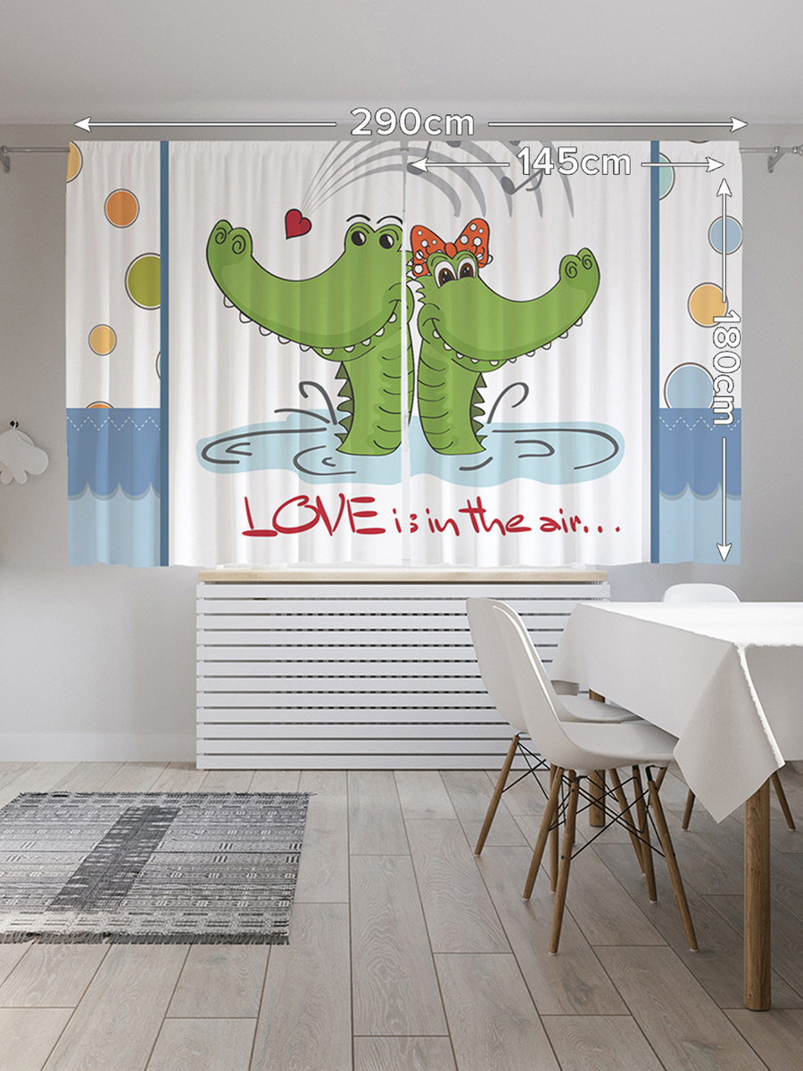 Шторы с фотопечатью "Влюбленные крокодилы" из сатена, 145х180 см