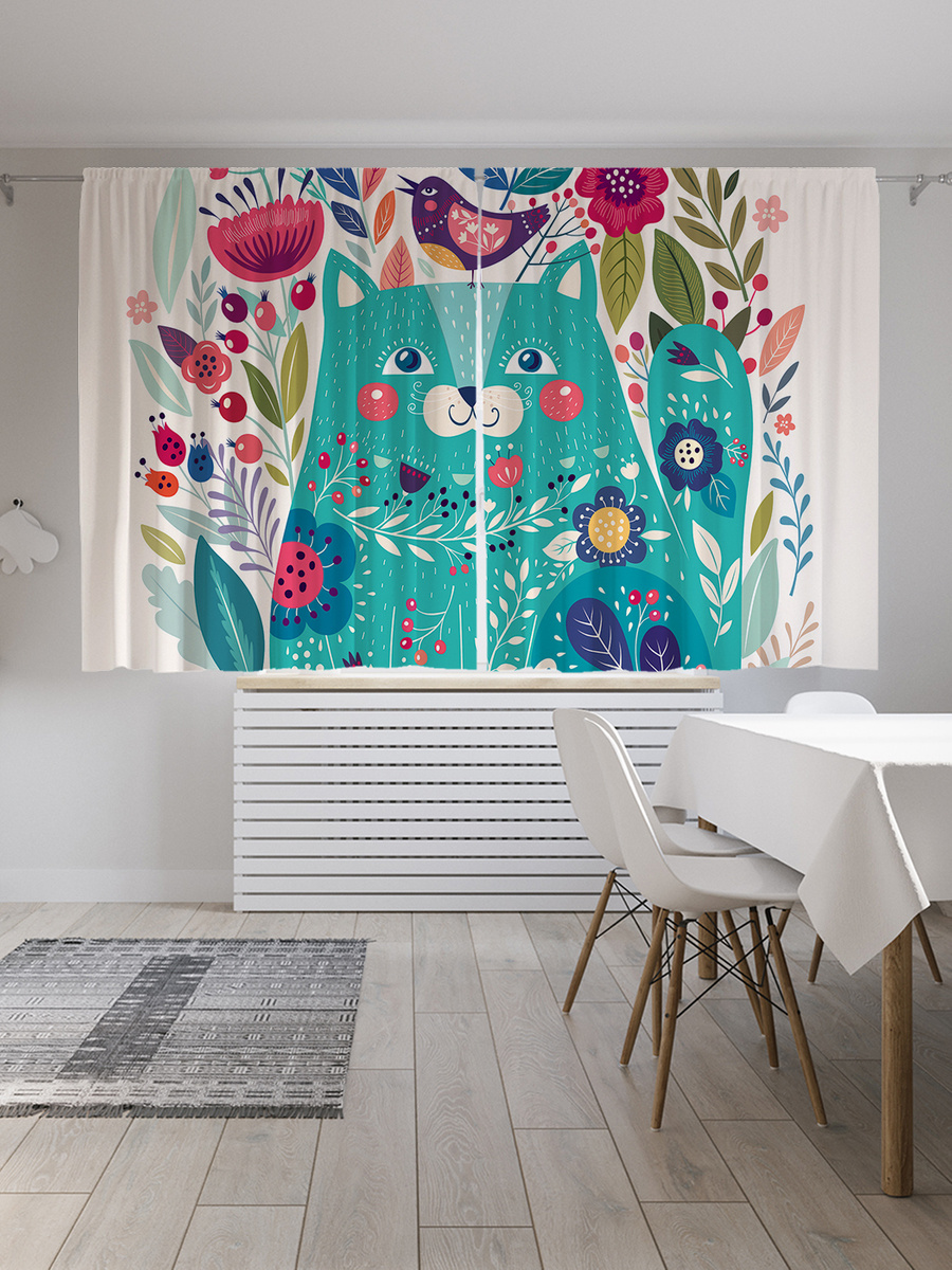 Шторы с фотопечатью "Счастливый котик" из сатена, 145х180 см