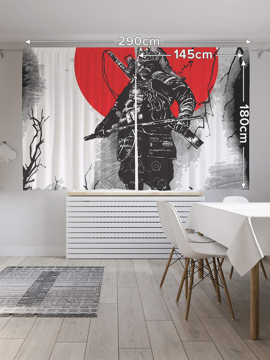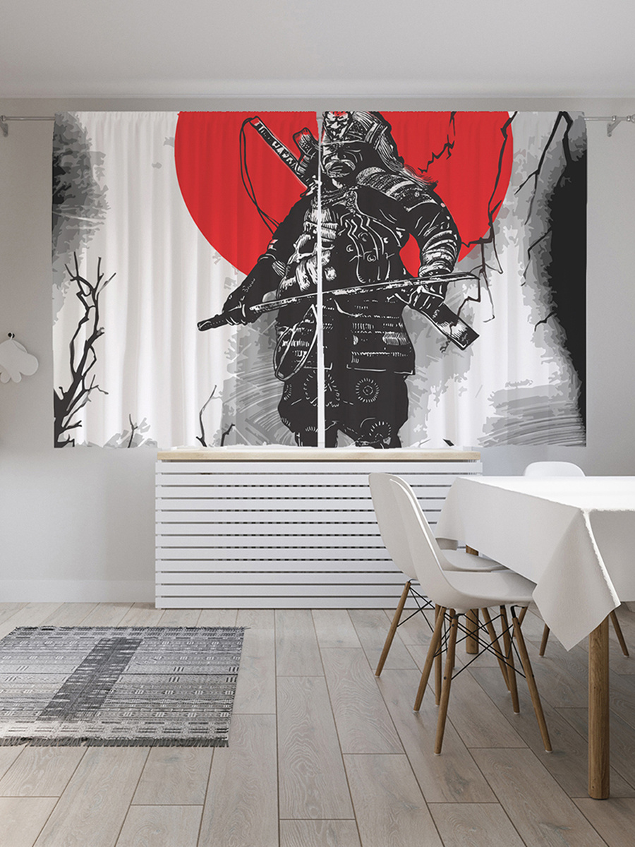 Шторы с фотопечатью "Японский самурай" из сатена, 145х180 см