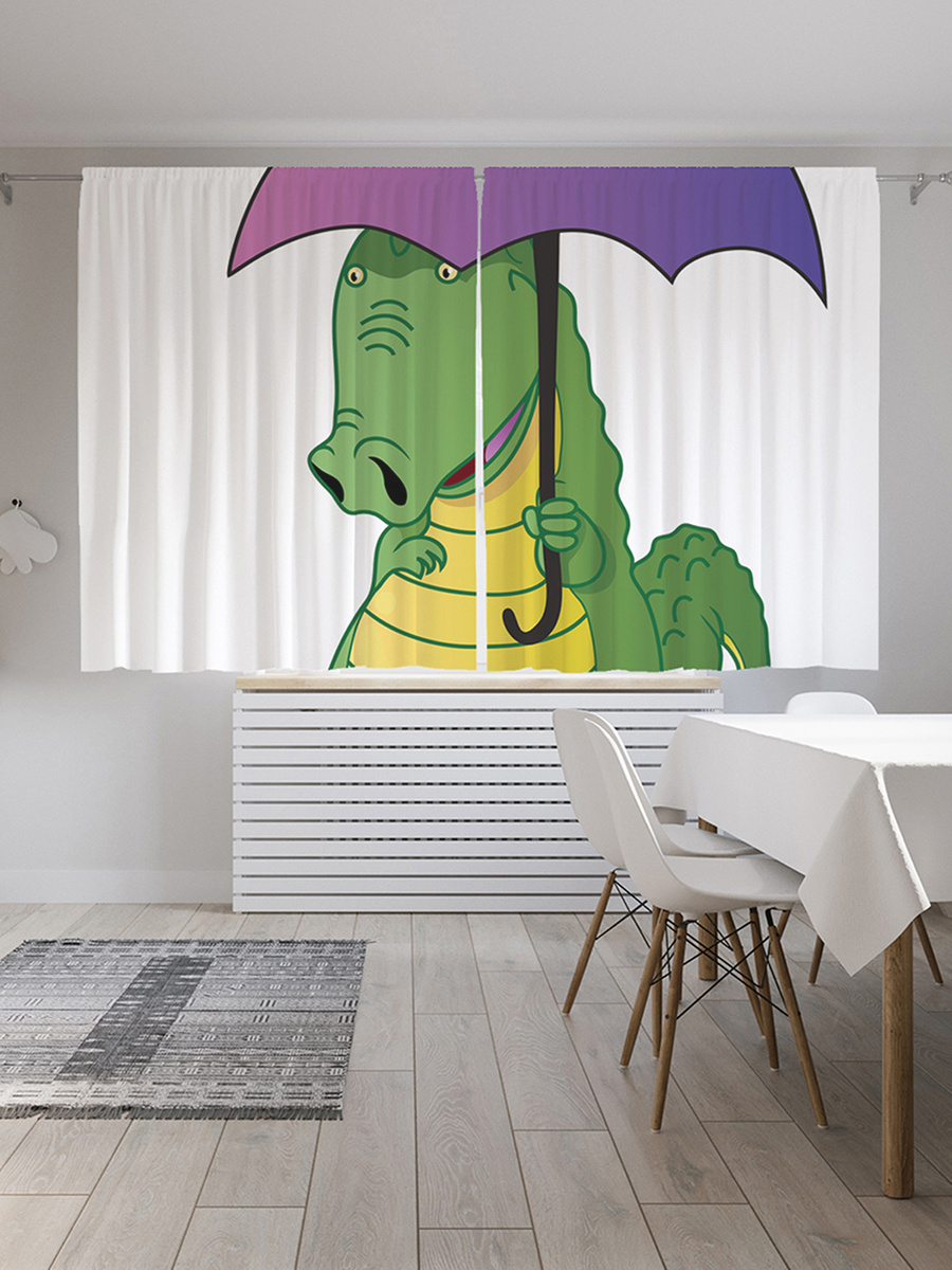 Шторы с фотопечатью "Крокодил под зонтом" из сатена, 145х180 см