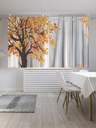 Шторы с фотопечатью "Лиственная осень" из сатена, 145х180 см