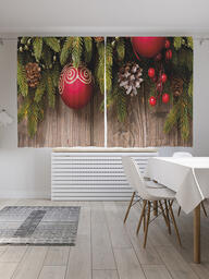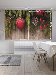 Шторы с фотопечатью "Елочные ветки" из сатена, 145х180 см