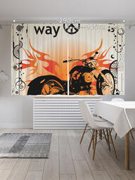 Шторы с фотопечатью "Мотоцикл в пламени" из сатена, 145х180 см