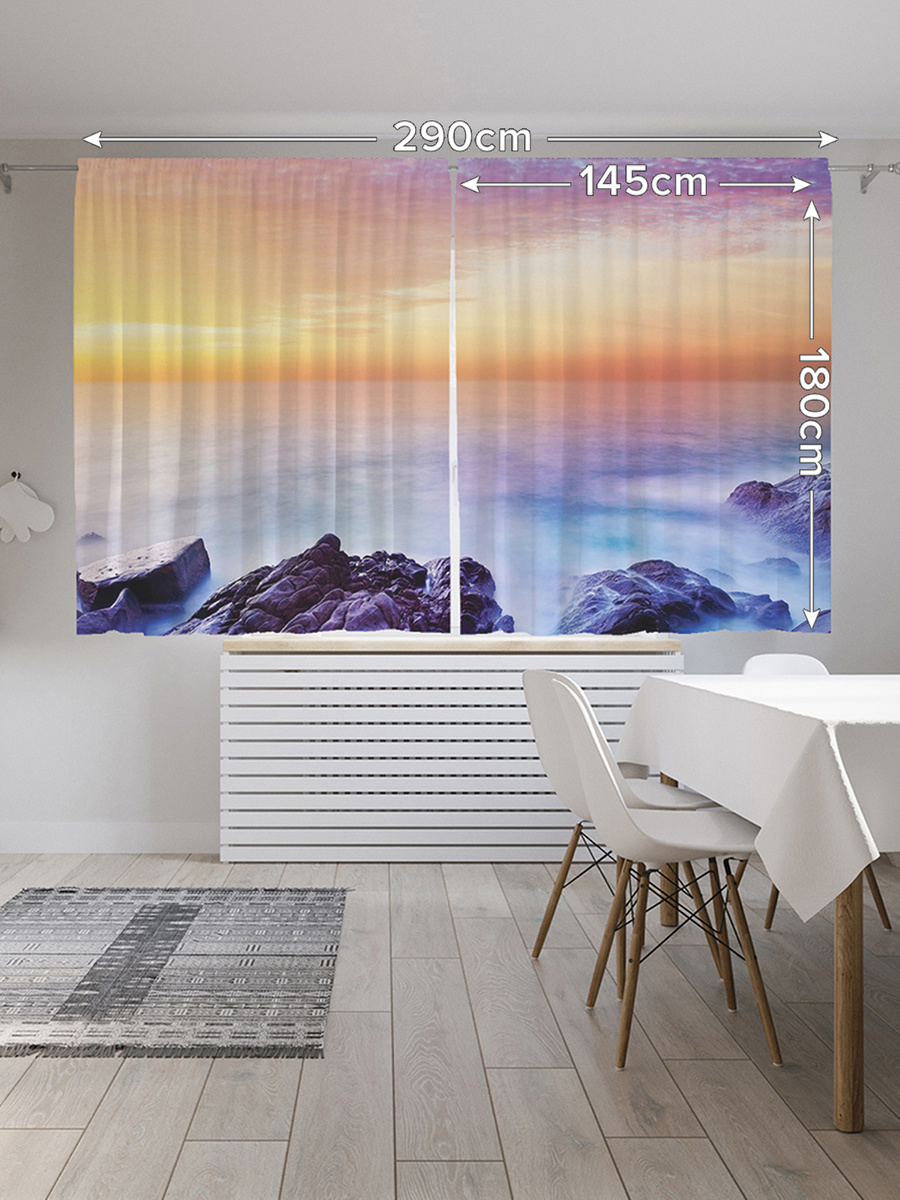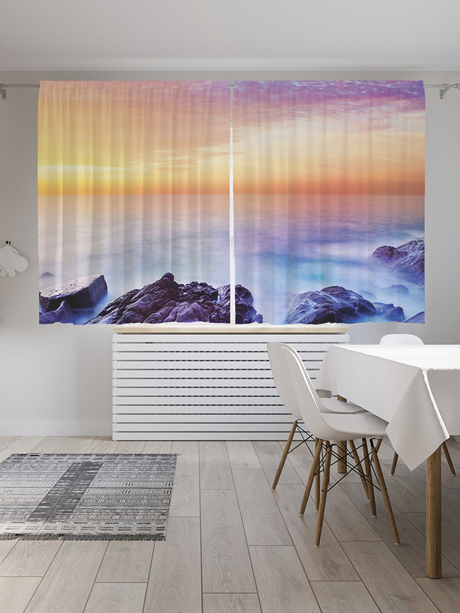Шторы с фотопечатью "Влажные камни" из сатена, 145х180 см