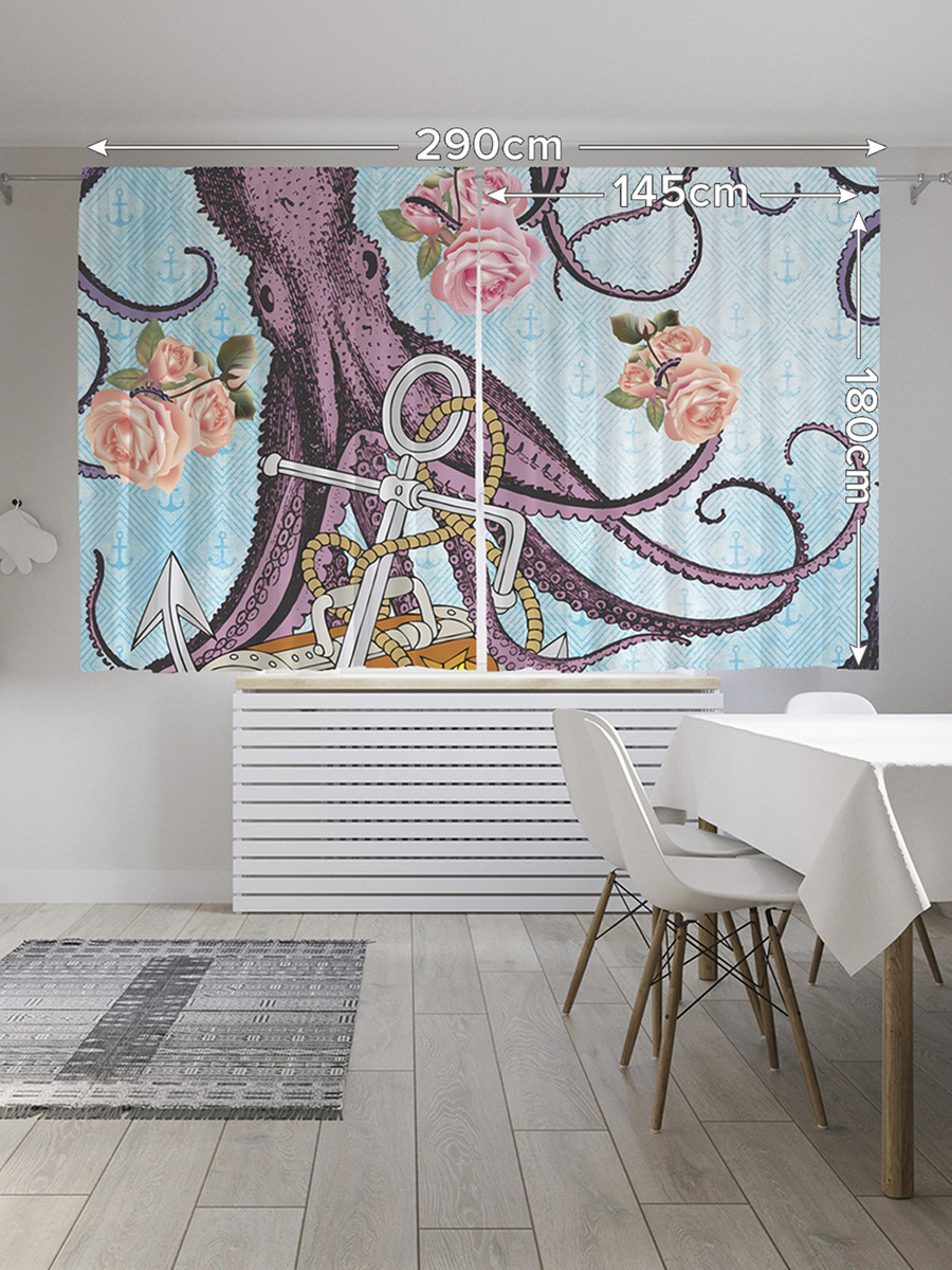 Шторы с фотопечатью "Сокровище осьминогов" из сатена, 145х180 см