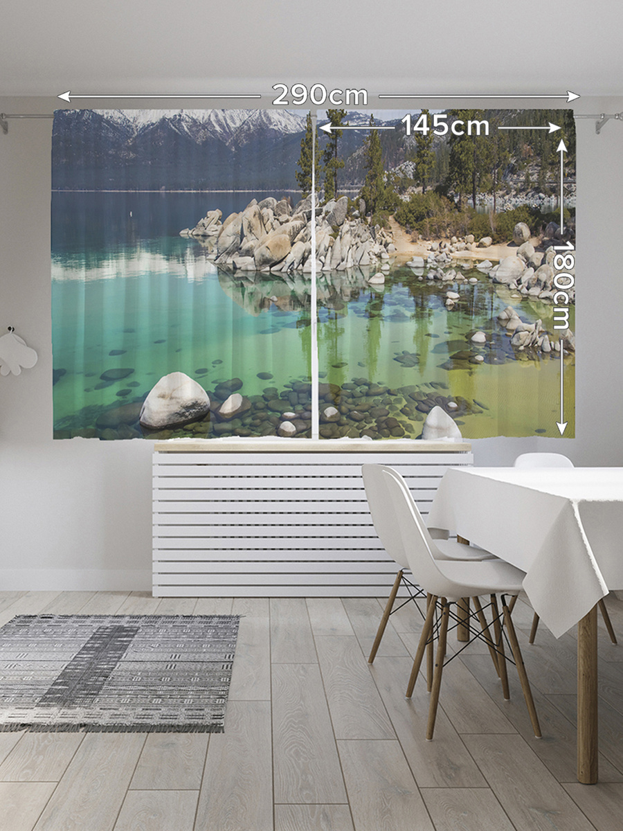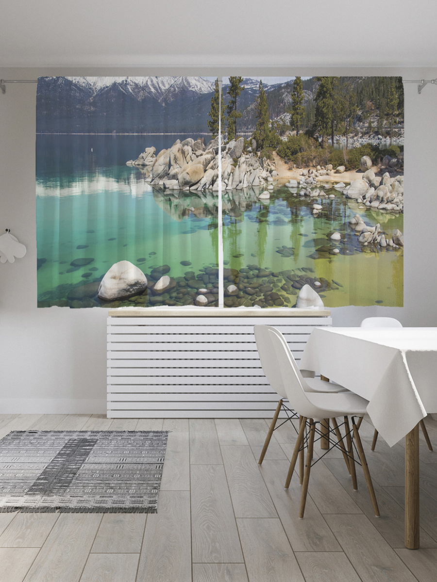 Шторы с фотопечатью "Горное мелководье" из сатена, 145х180 см