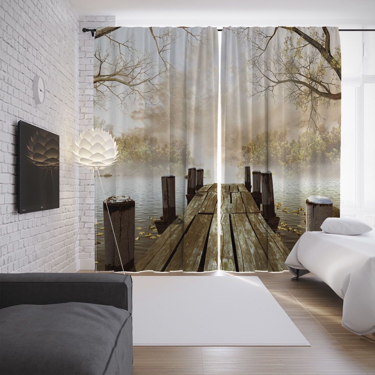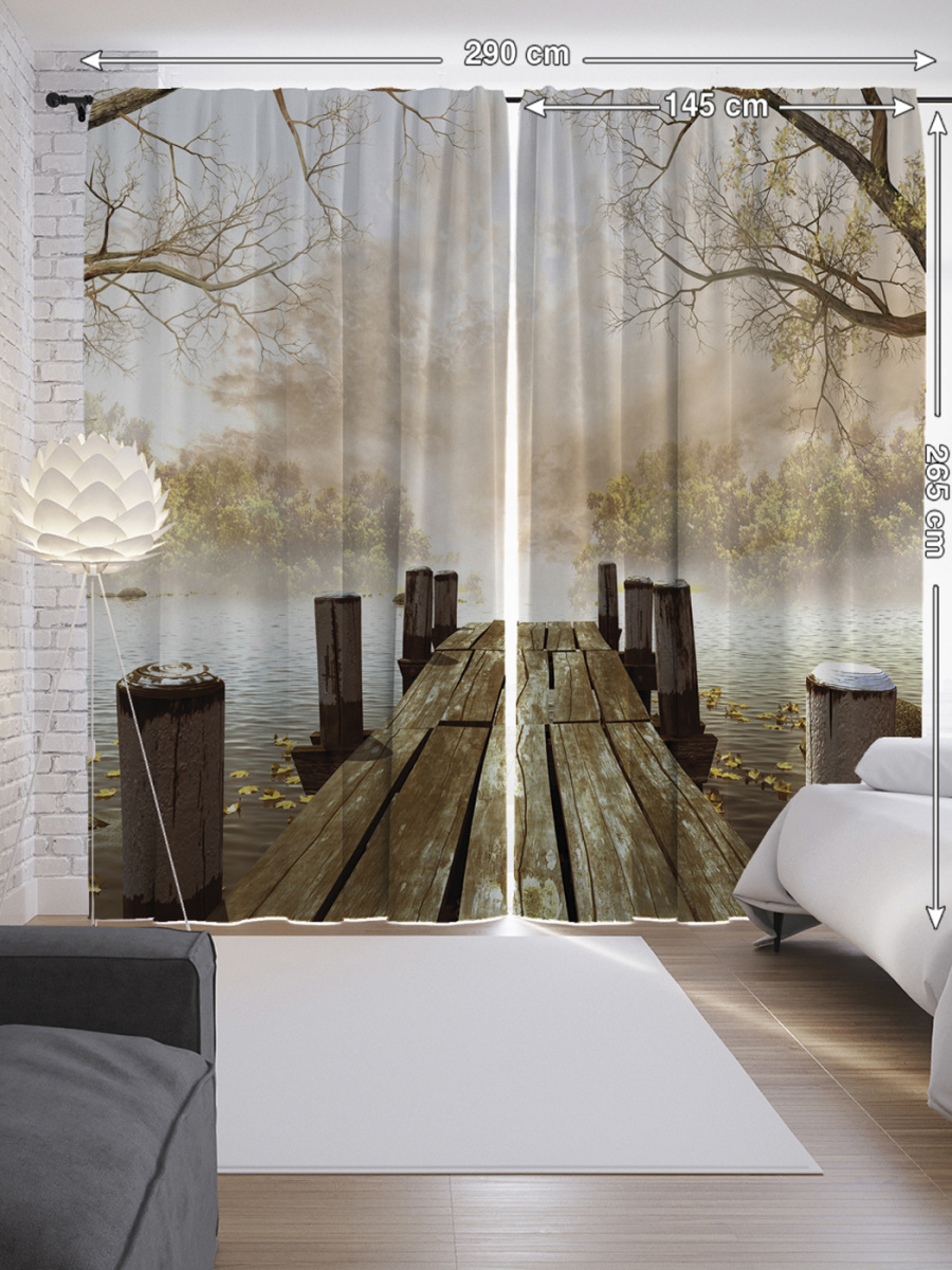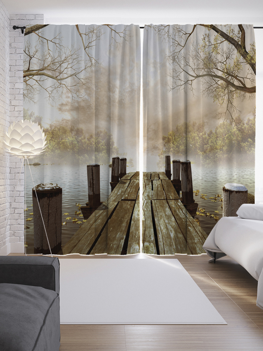 Шторы с фотопечатью "Старинный мостик" из сатена, 145x265 см