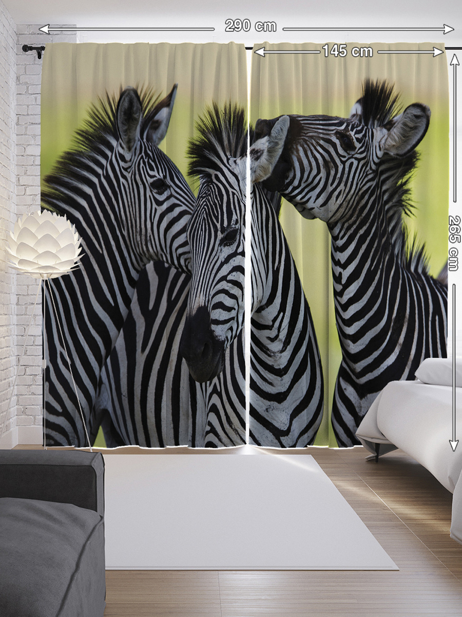 Шторы с фотопечатью "Зебровая нежность" из сатена, 290х265 см