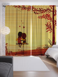 Шторы с фотопечатью "Две половинки" из сатена, 290х265 см
