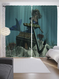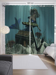 Шторы с фотопечатью "Сокровища русалок" из сатена, 145x265 см