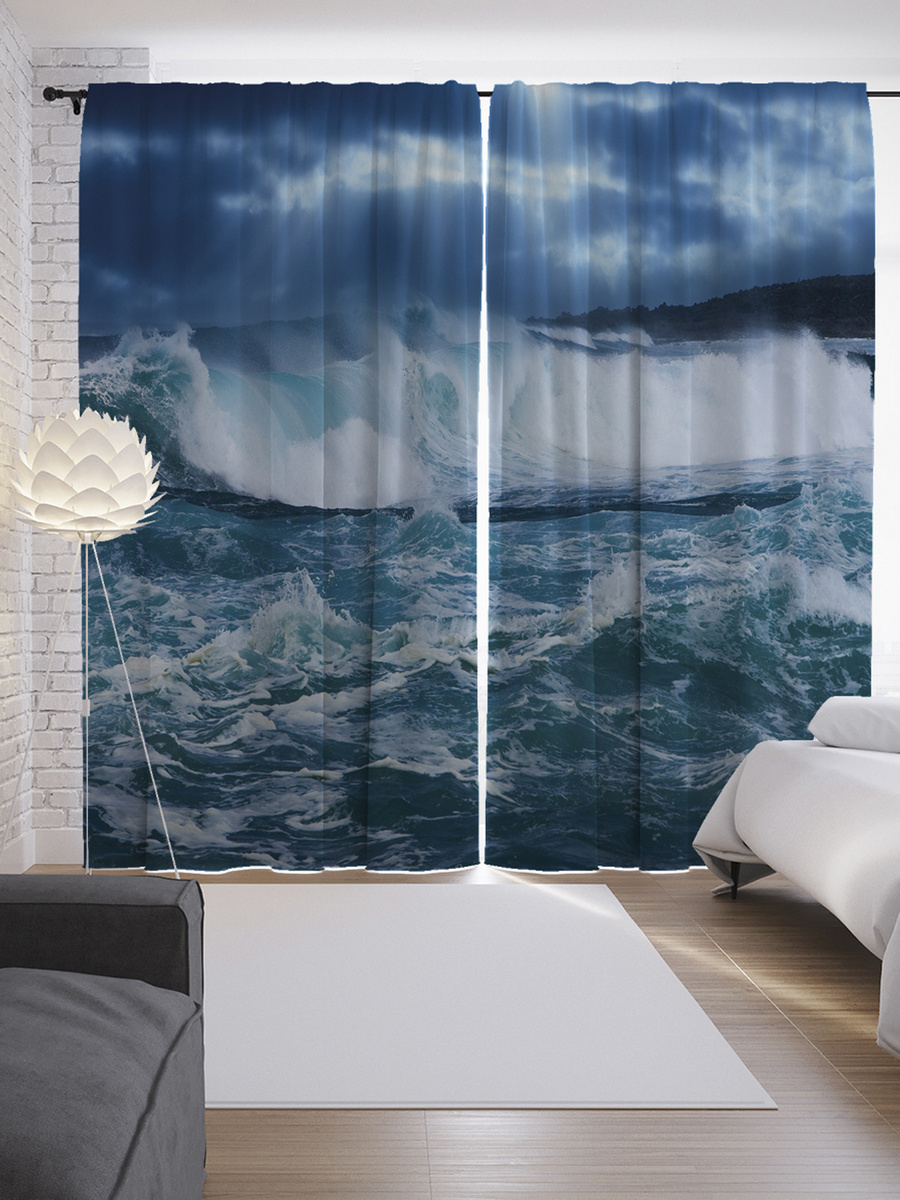 Шторы с фотопечатью "Агрессивная вода" из сатена, 145x265 см