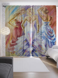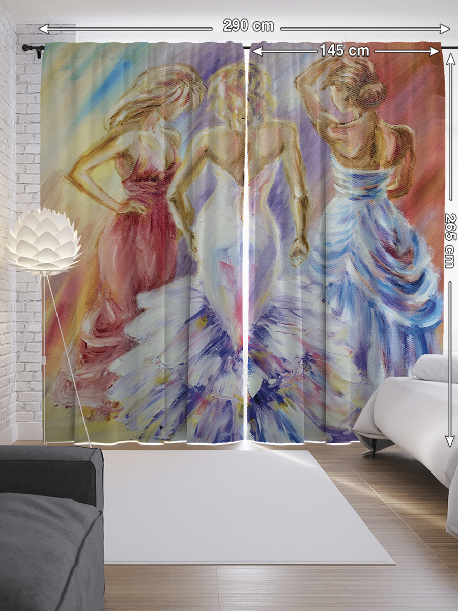 Шторы с фотопечатью "Трио в прекрасных платьях" из сатена, 145x265 см