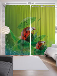 Шторы с фотопечатью "Забавные божьи коровки" из сатена, 145x265 см