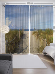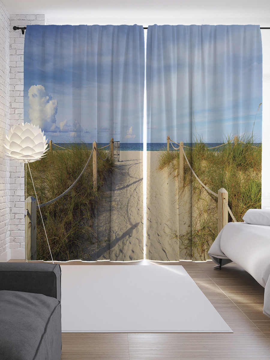 Шторы с фотопечатью "Дорожка к морю" из сатена, 290х265 см
