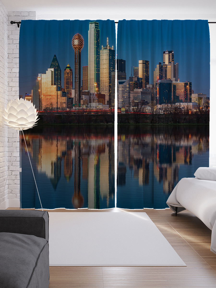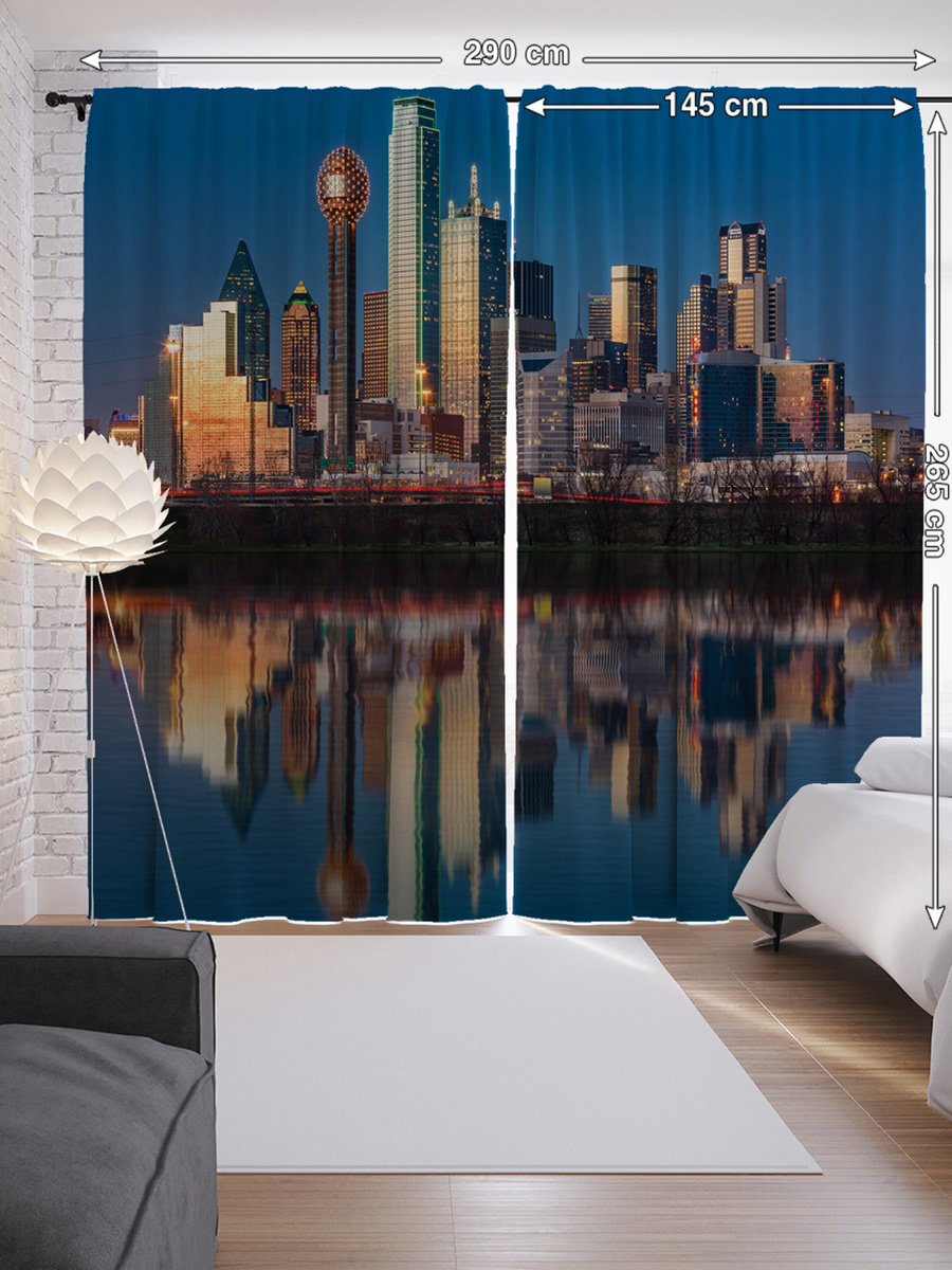 Шторы с фотопечатью "Даллас в лучах восхода" из сатена, 290х265 см