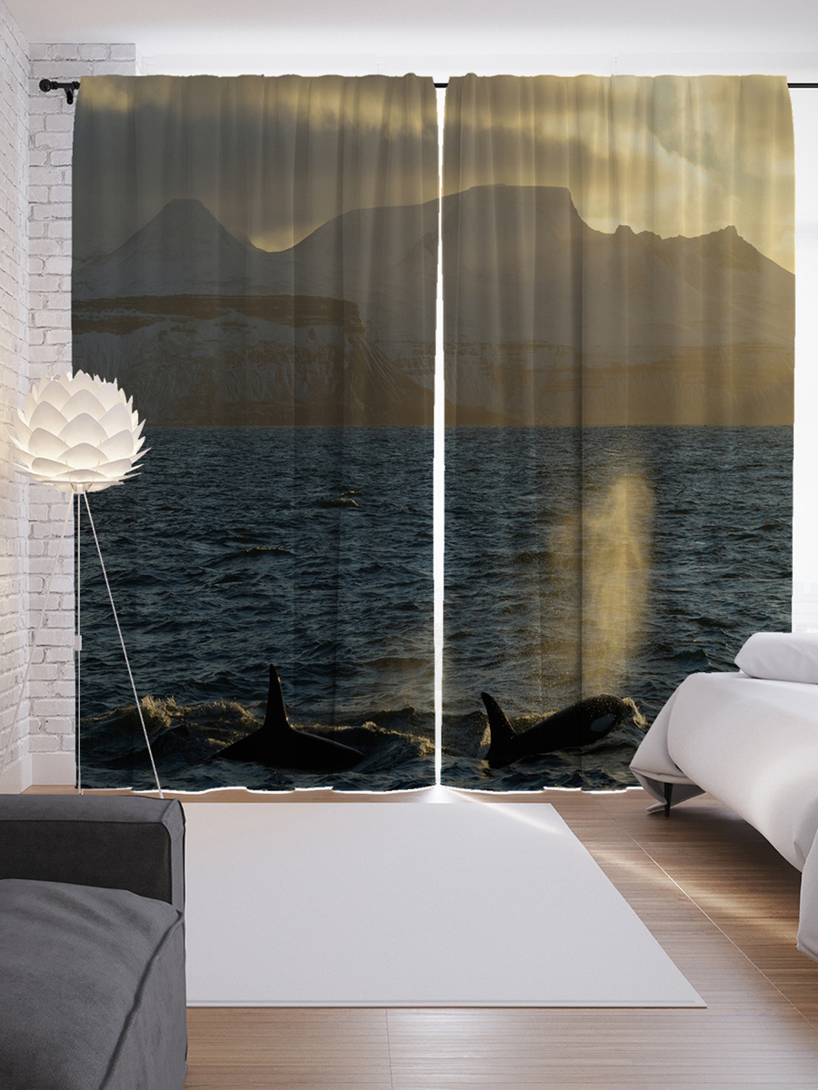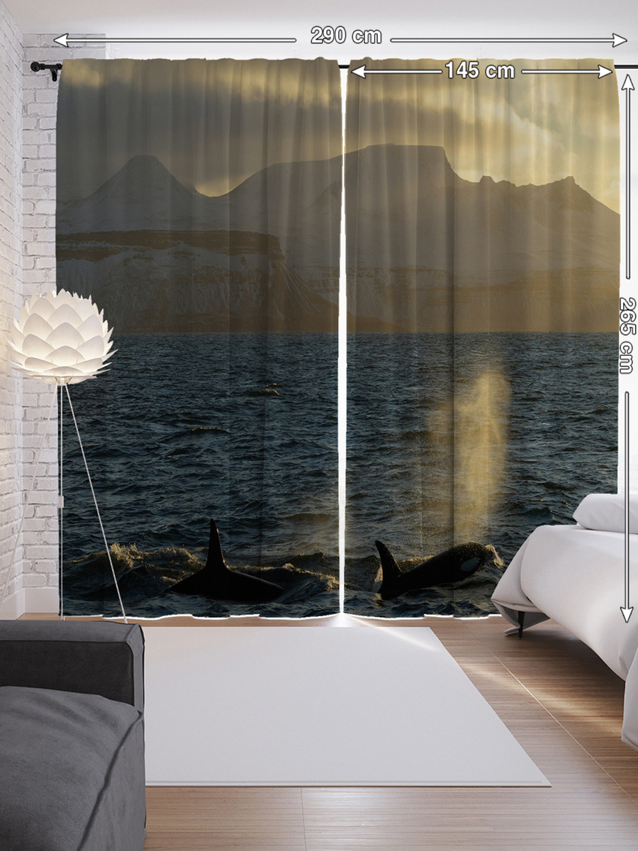 Шторы с фотопечатью "Косатки в лучах солнца" из сатена, 290х265 см